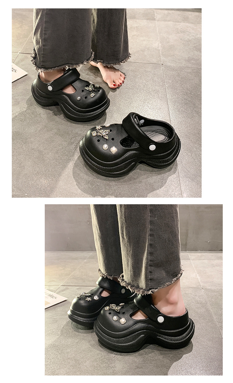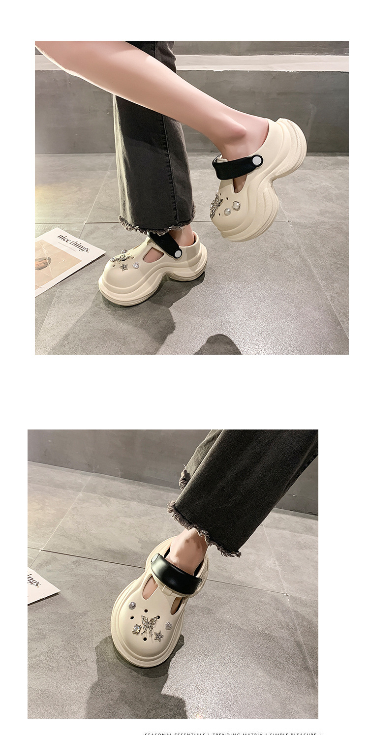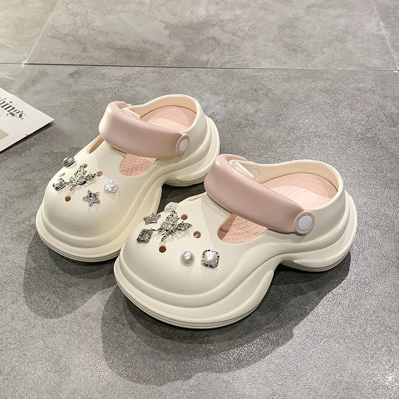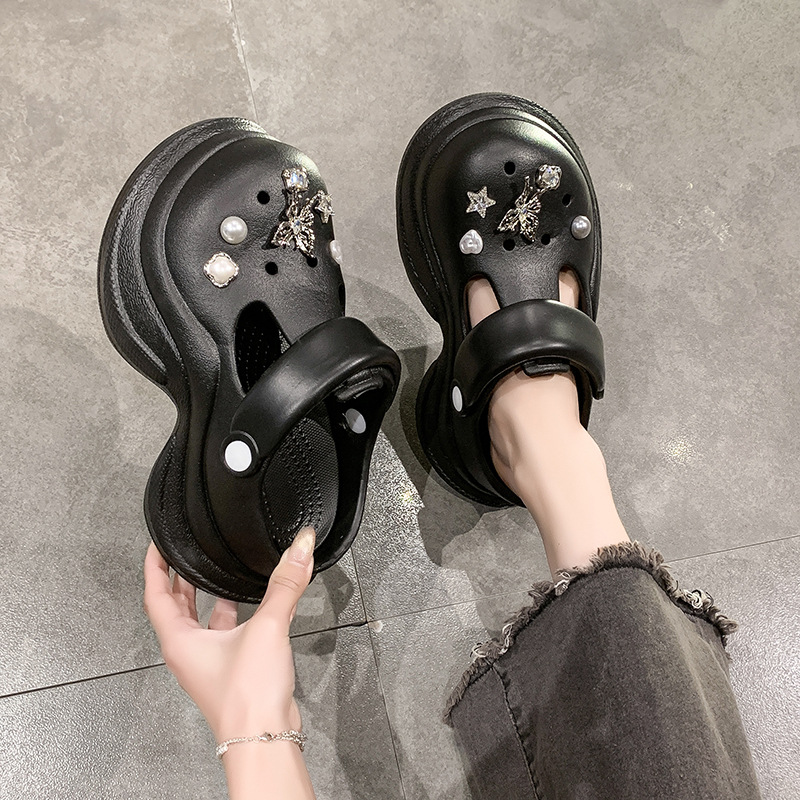 여성용 두꺼운 밑창 발가락 슬리퍼, 여성용 구멍 신발, 2025 새로운 장식 패션 슬리퍼, 여성용 여름 아우터웨어, 다용도 슬리퍼스토어 가기
