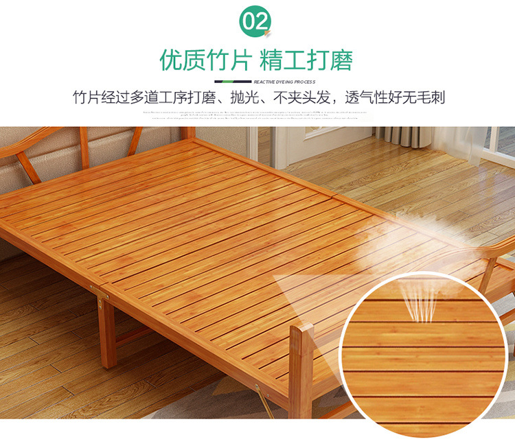 대나무 침대 접이식 침대 싱글 더블 간단한 가정용 성인 대나무 시트 냉각 침대 1.2m 임대 하드 보드 나무 침대스토어 가기