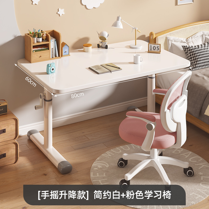 • [책상과 의자 세트] 미니멀리스트 화이트 80*60+ 리프트 스터디 체어 [핑크]