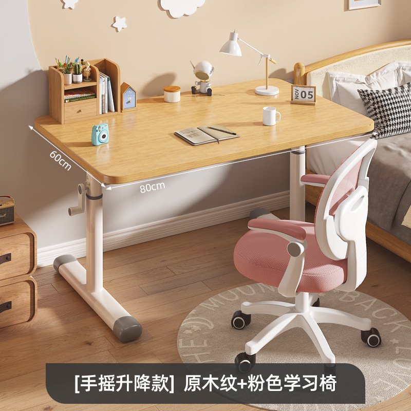 • [책상과 의자 세트] 로그컬러 80*60+ 리프트 스터디체어 [핑크]