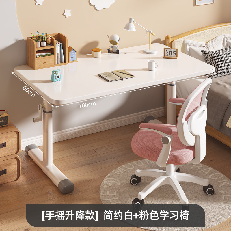 • [책상과 의자 세트] 미니멀리스트 화이트 100*60+ 리프트 스터디 체어 [핑크]