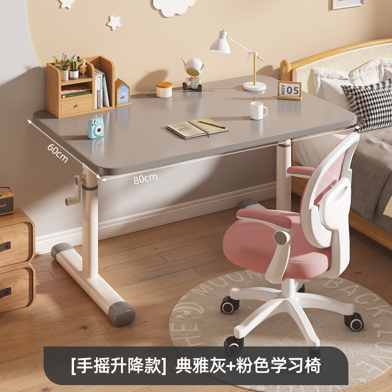 • [책상과 의자 세트] 엘레강트 그레이 80*60+ 리프트 스터디체어 [핑크]