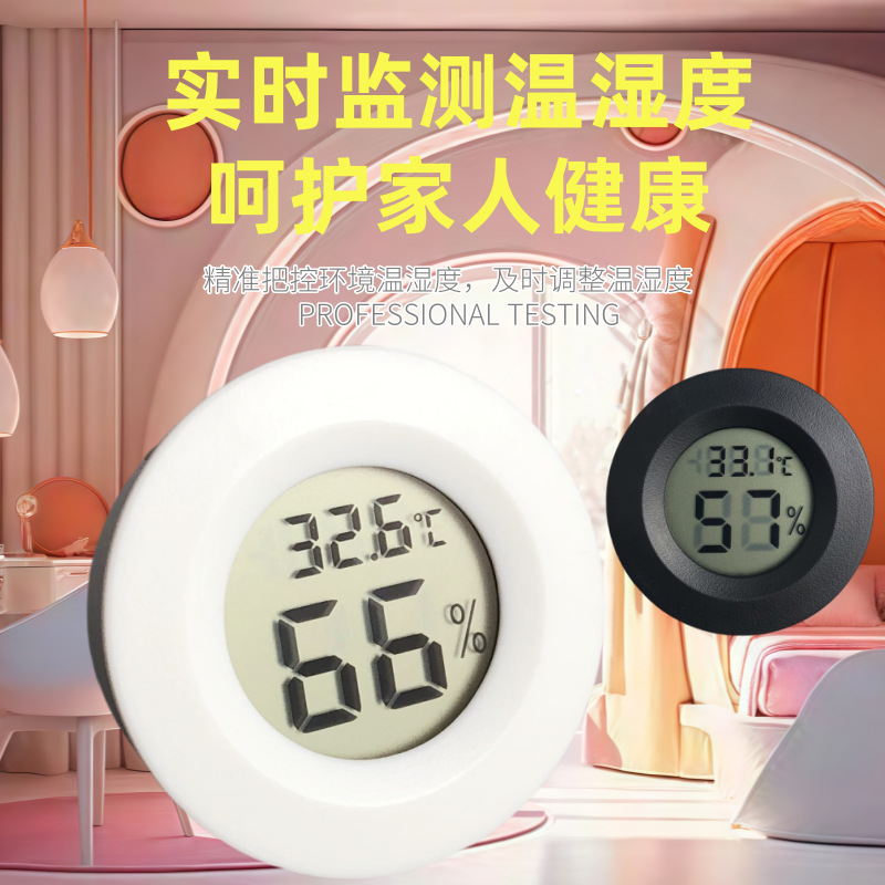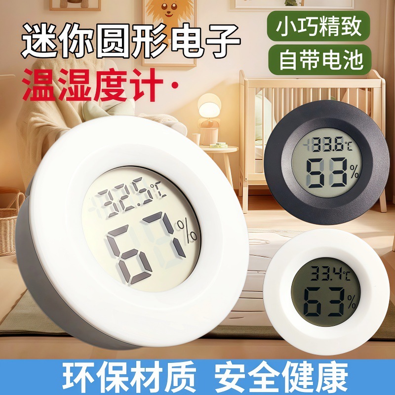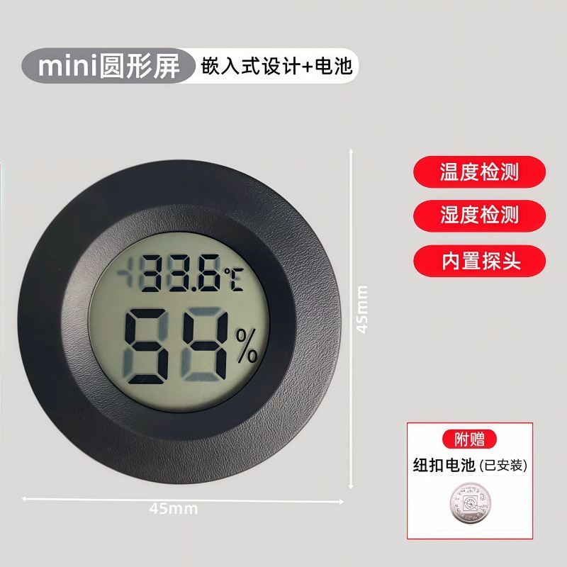 가정용 원형 온도 및 습도 측정기 파충류 사육 상자 전자 온도계 내장 온도 및 습도 측정기