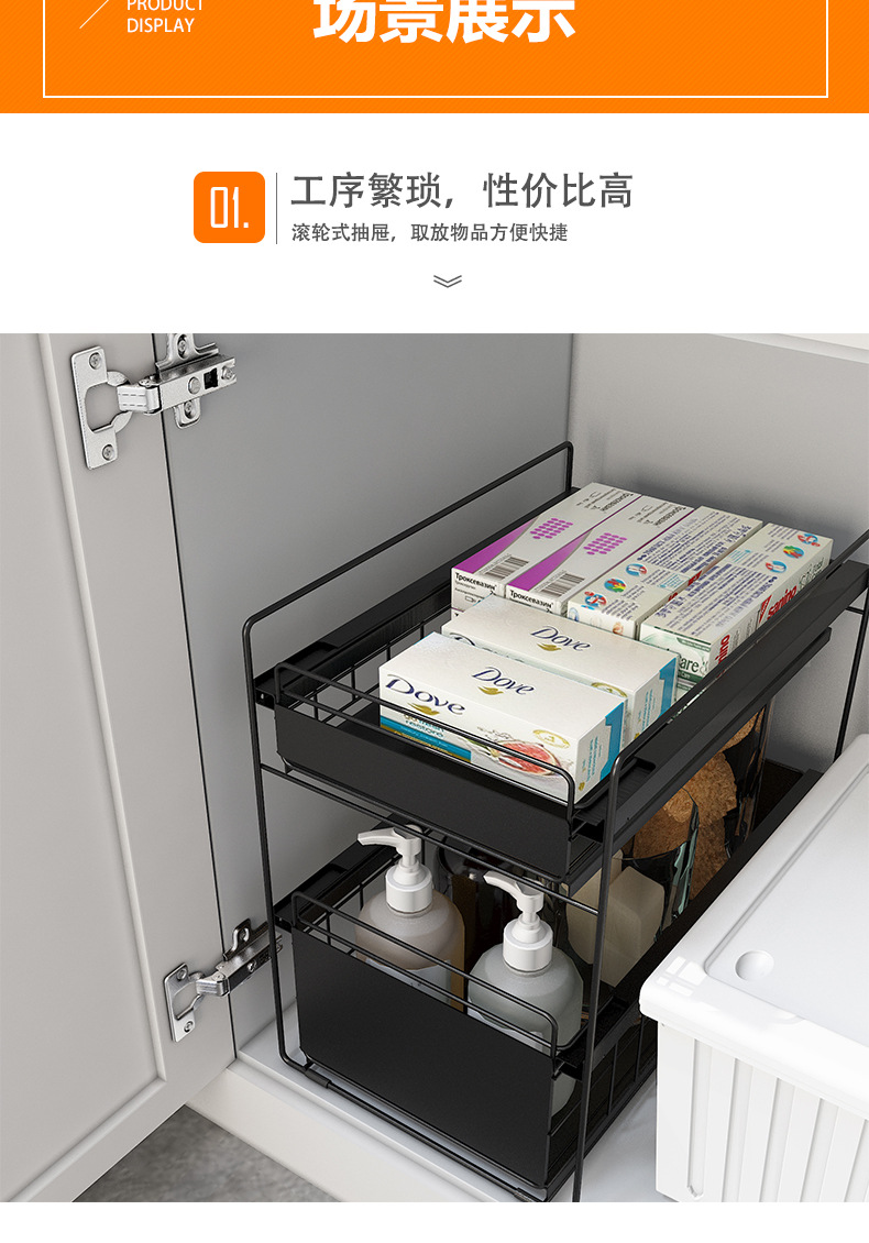 싱크대 아래 캐비닛 주방용 풀아웃 바구니, 2단 서랍형 식기걸이, 풀아웃 양념통, 철제 예술 작품 도매스토어 가기