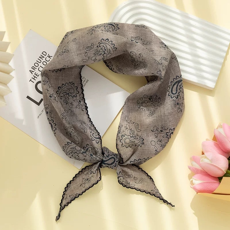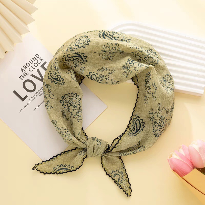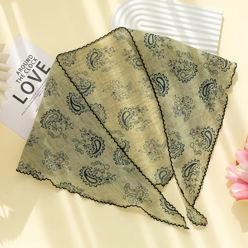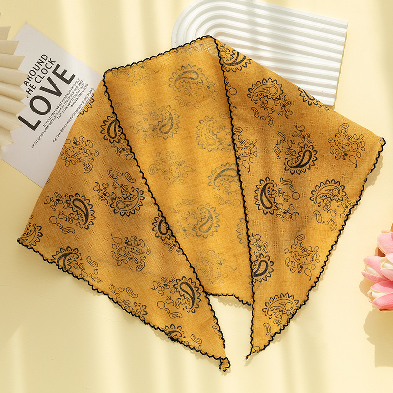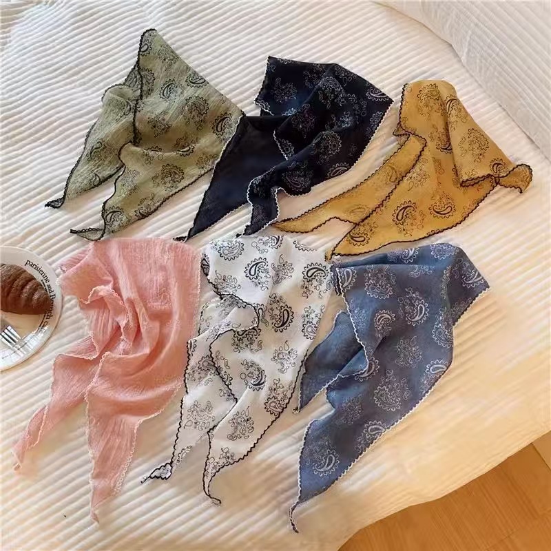 2025 봄 여름 신작 캐슈 플라워 삼각 스카프 여성 문학 복고풍 면 및 린넨 작은 스카프 일본식 머리띠 스카프