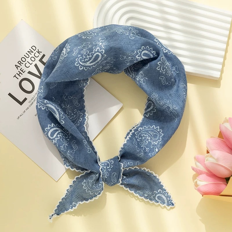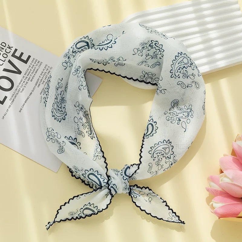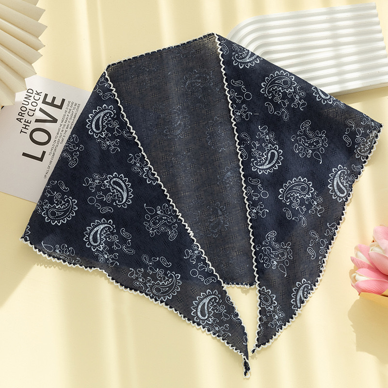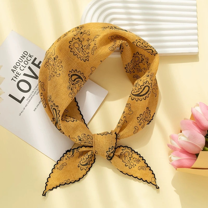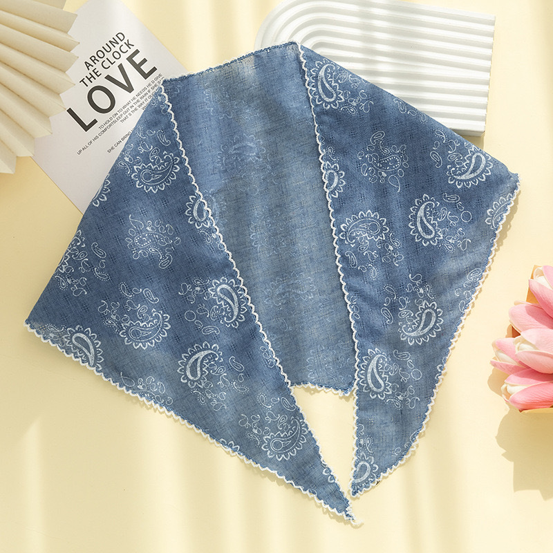 2025 봄 여름 신작 캐슈 플라워 삼각 스카프 여성 문학 복고풍 면 및 린넨 작은 스카프 일본식 머리띠 스카프