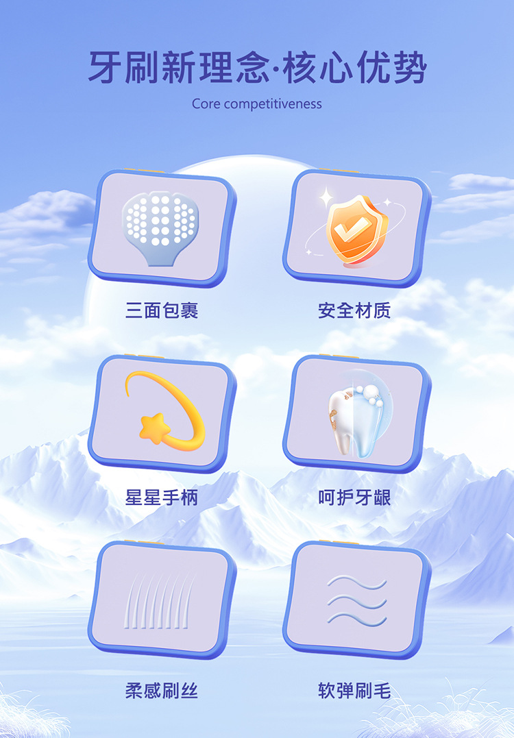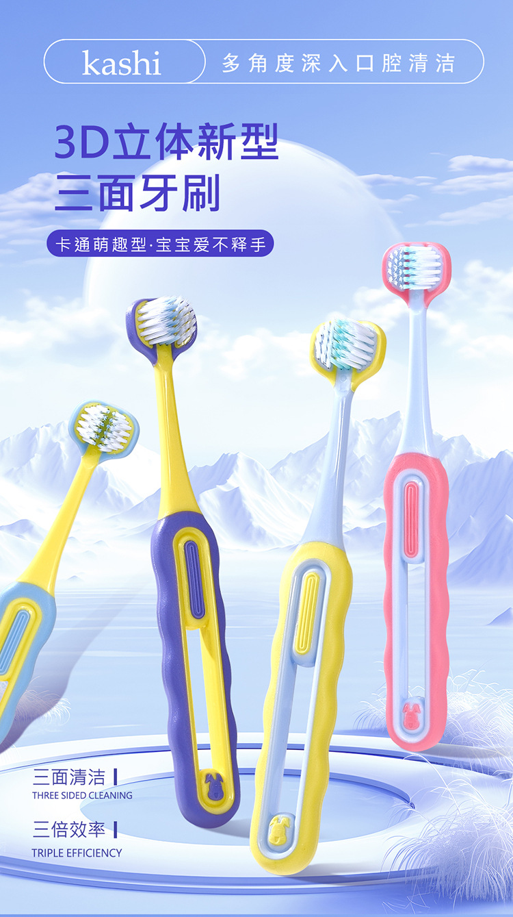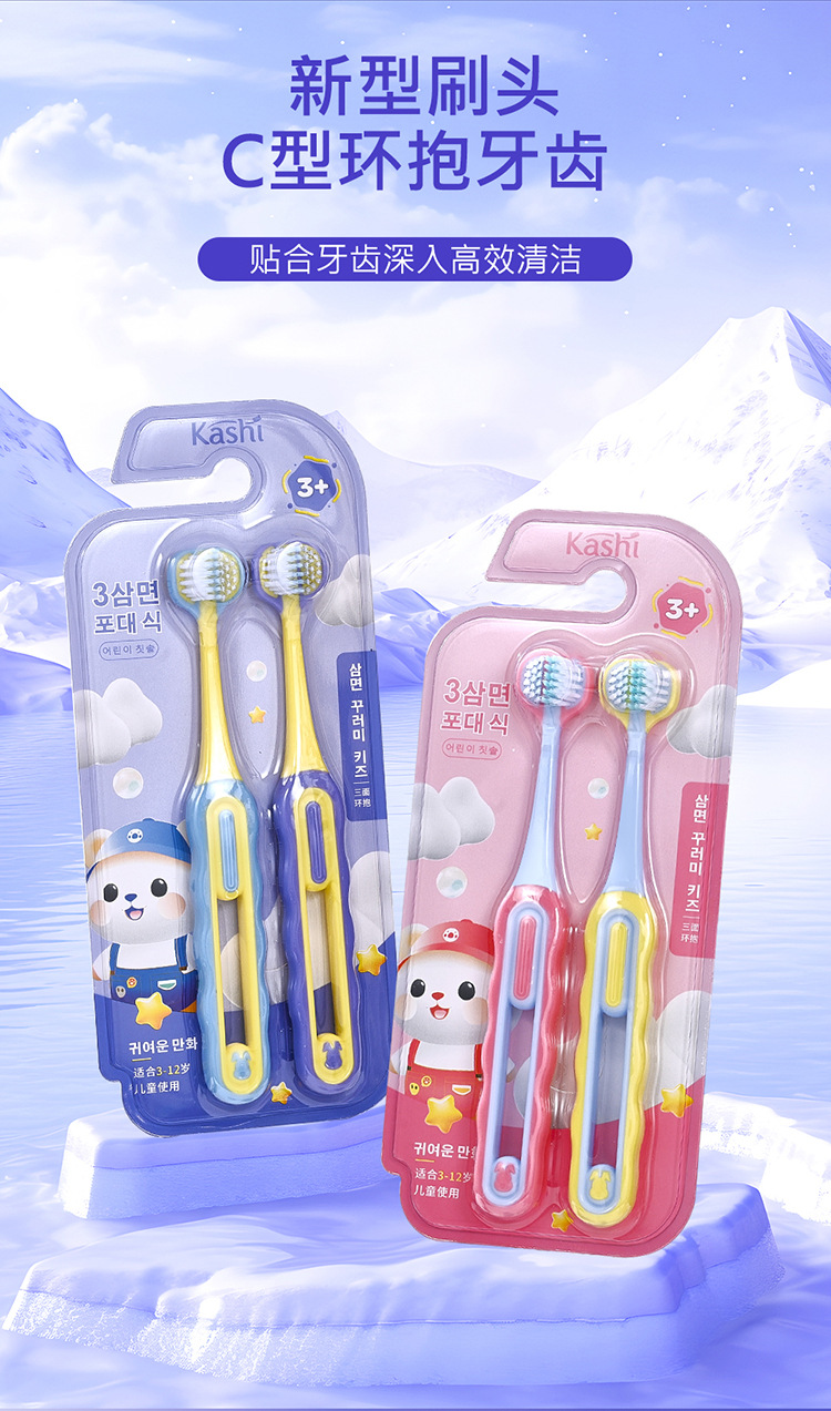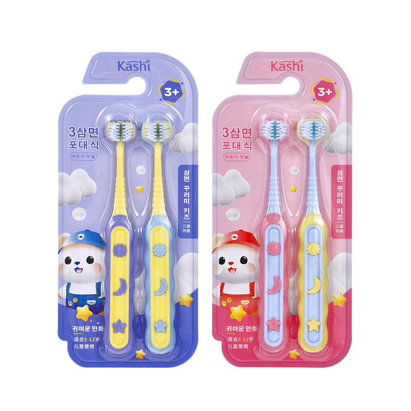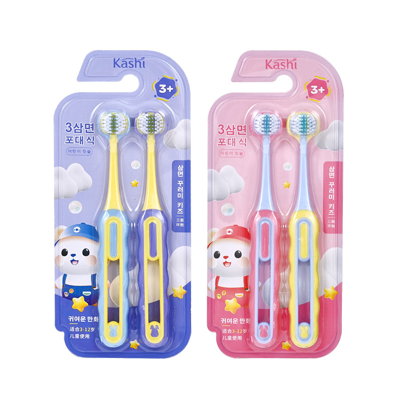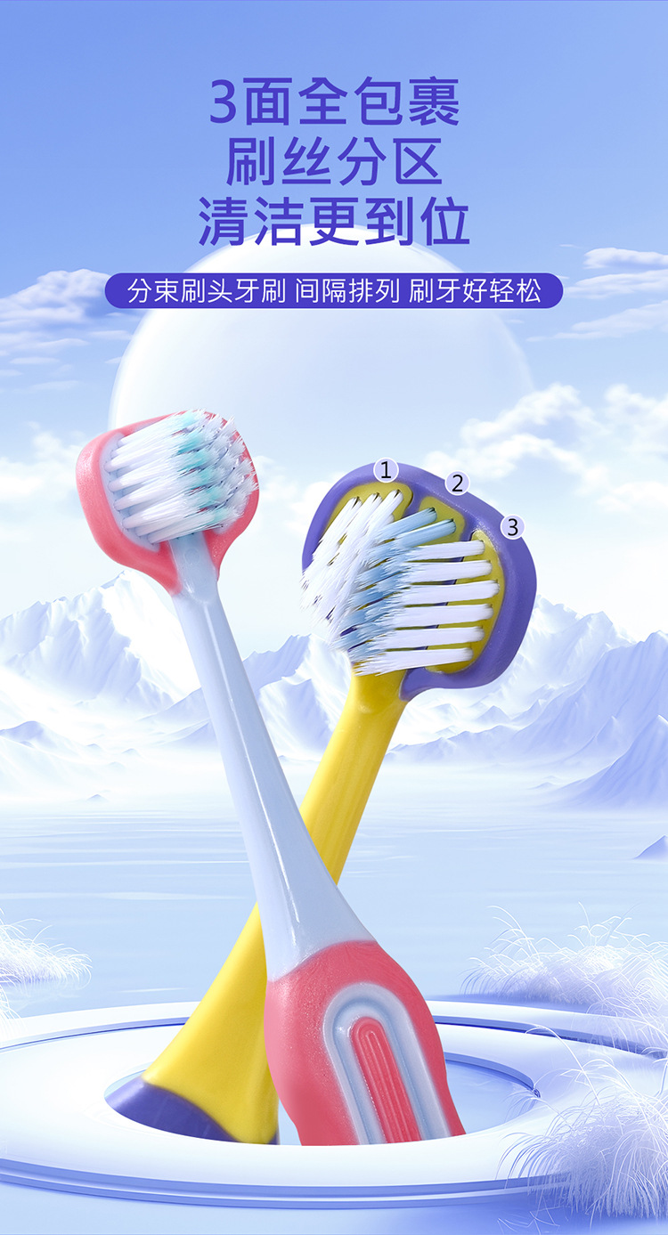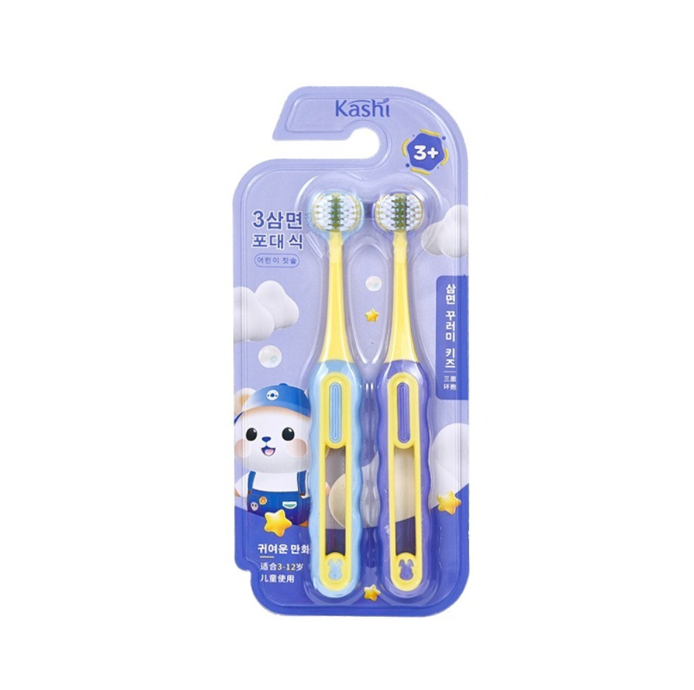 [3-12세] 어린이용 3면 포장형 부드러운 칫솔 U자형 3D 입체 잇몸 보호 및 치아 청소 학생용 칫솔
