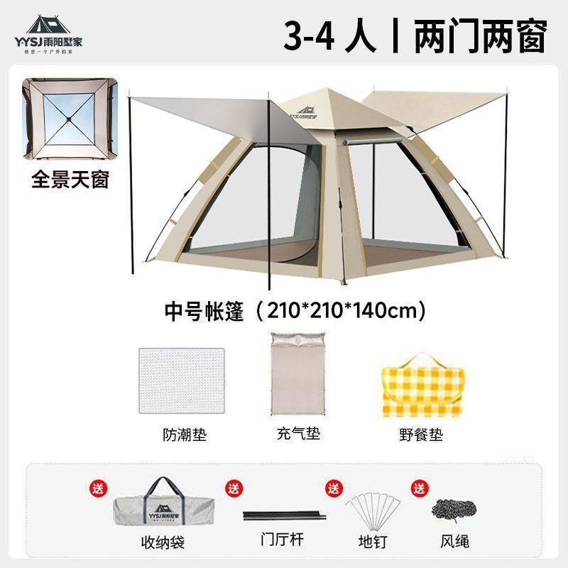 Yuyangshujia 텐트 야외 휴대용 접이식 공원 피크닉 캠핑 자동 두꺼운 방수 야외 장비 세트