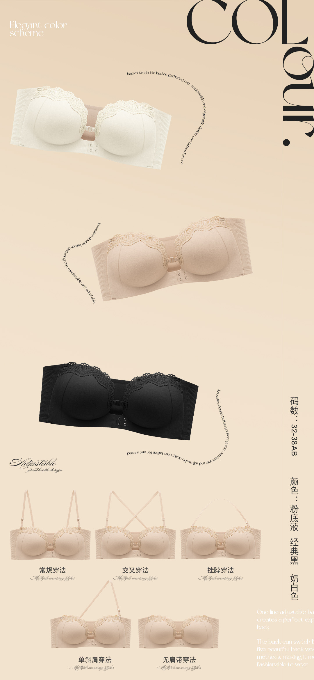 섹시한 보이지 않는 리퀴드 파운데이션 뷰티 백 브라 푸시업 더블 버튼 속옷 여성 작은 가슴 끈이 없는 브라 대외 무역 국경 간스토어 가기