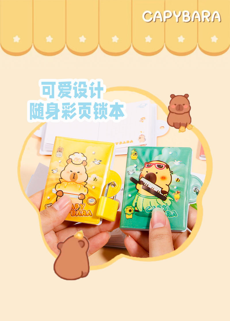 Kapibala 미니 잠금 노트 ins 고급스러운 만화 귀여운 학생 색칠 공부 노트 휴대용 메모장스토어 가기