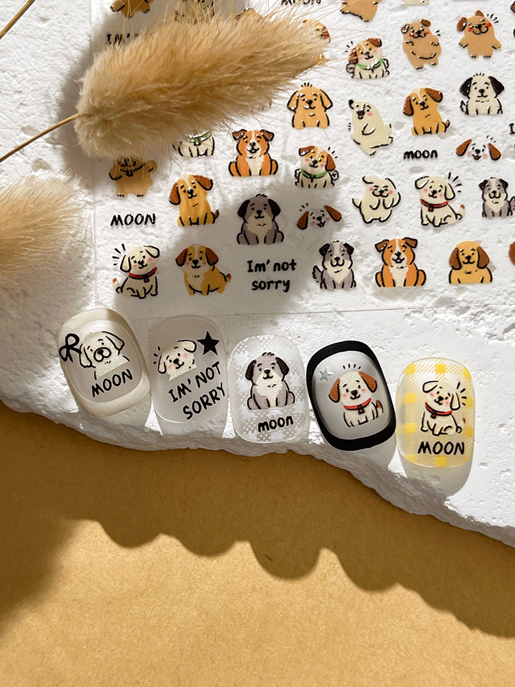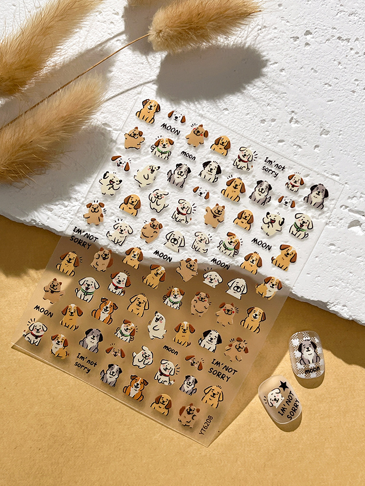 YITU 엘리베이티드 강아지 네일 아트 스티커 간단하고 귀여운 만화 인터넷 연예인 인기 장식 스티커 YT6208