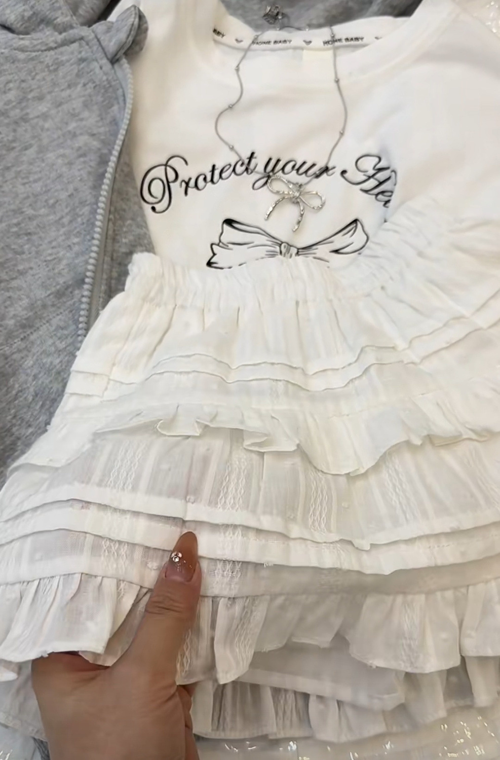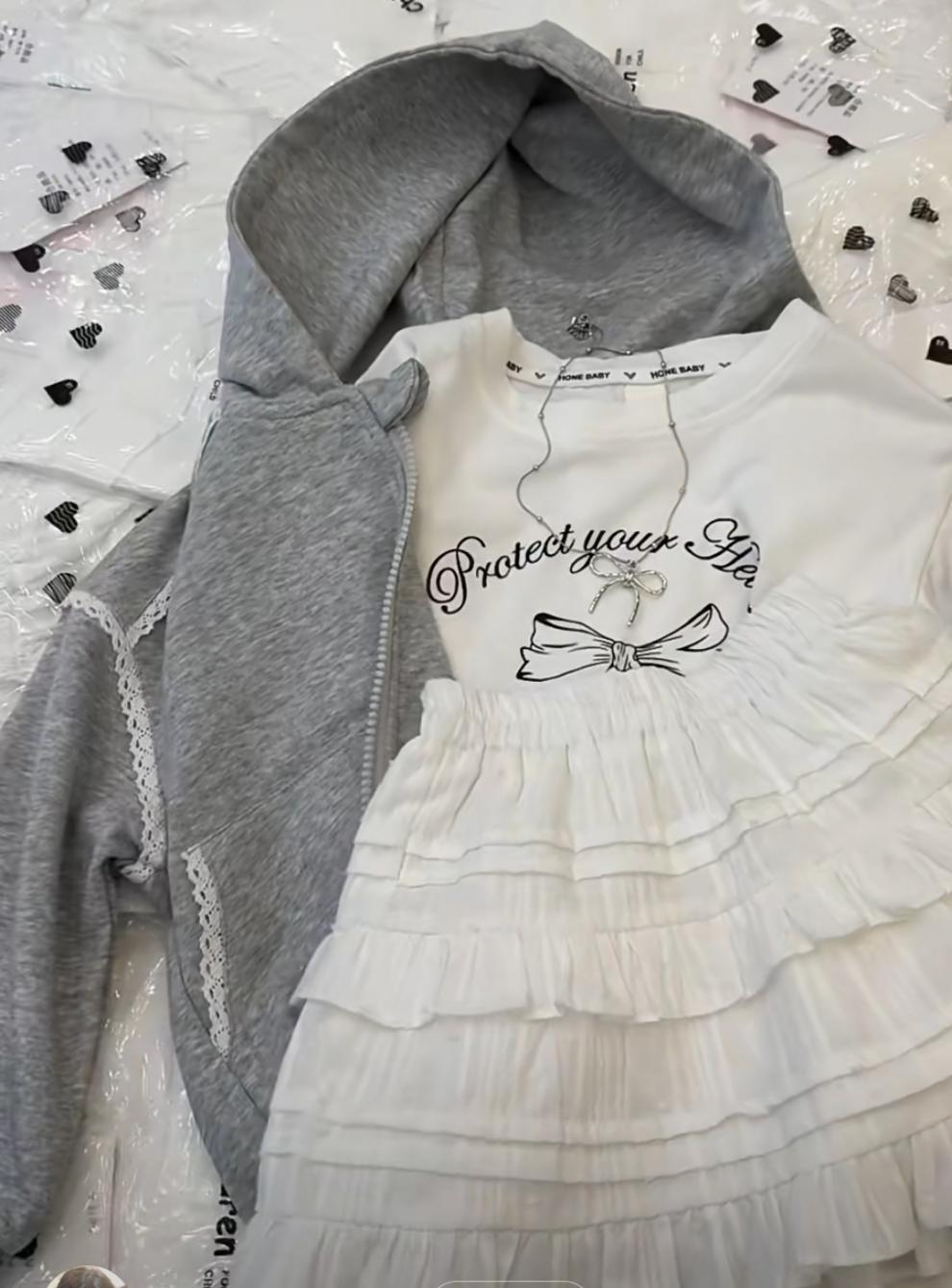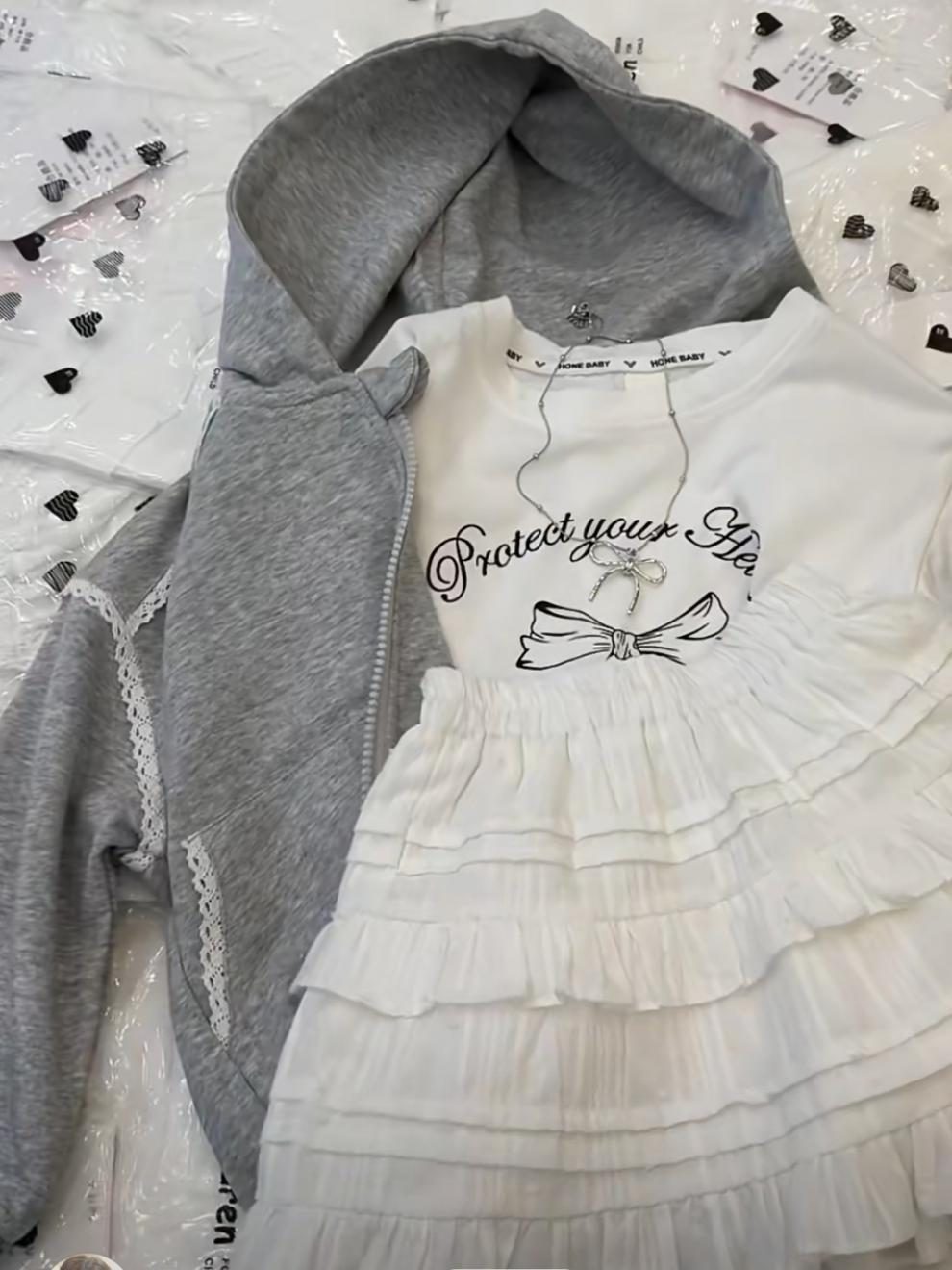 • 그레이 반팔 + 케이크 스커트