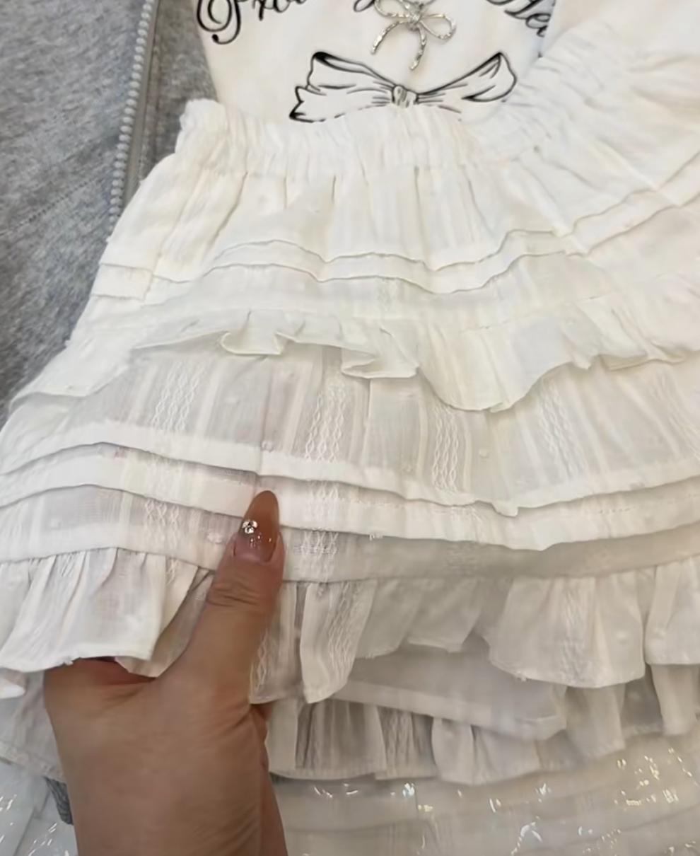 여자 스커트 2025 새로운 아동 의류 여름 스커트 패션 화이트 공주 케이크 스커트 스커트 달콤하고 다재다능한스토어 가기