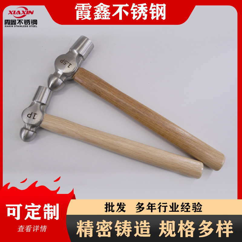 스테인레스 스틸 둥근 머리 망치 304 스테인레스 스틸 둥근 머리 망치 젖꼭지 망치 나무 손잡이 강철 손 망치 가정용 다양한 사양