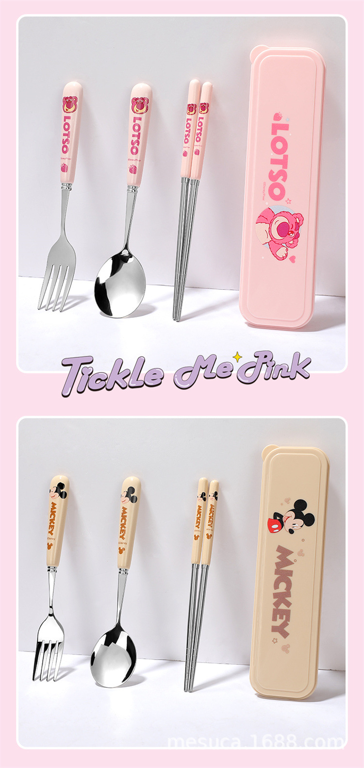 디즈니 식기 3종 세트 휴대용 개인 젓가락 숟가락 직장인 식기 수납함 학생스토어 가기