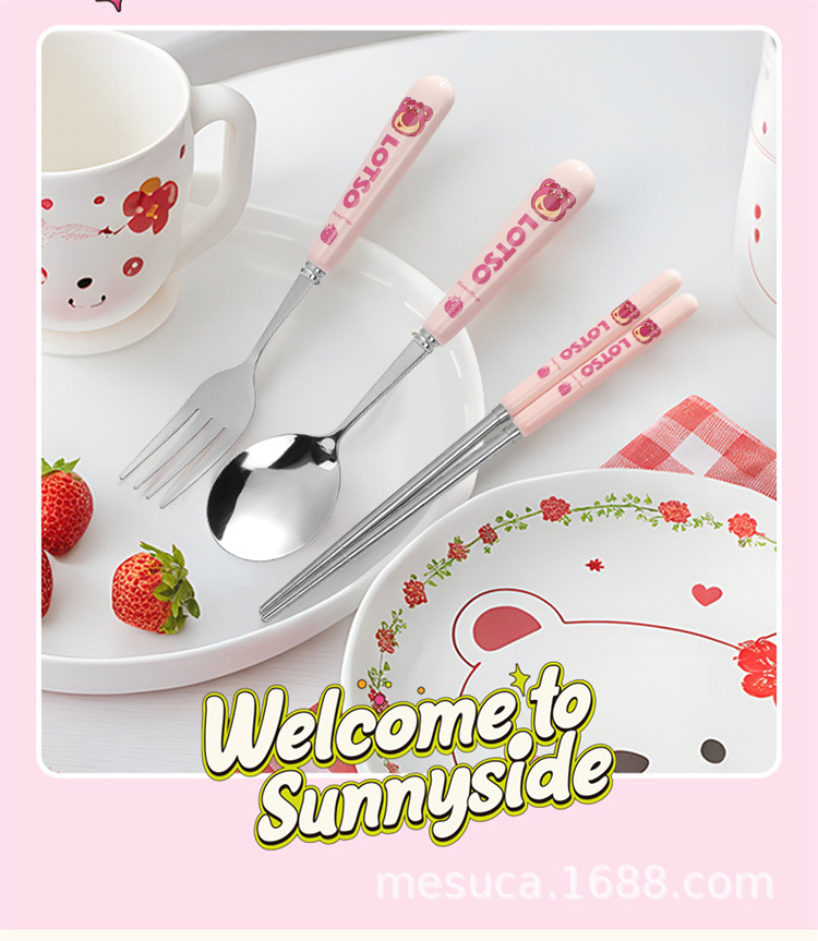 • DM24129-LO 딸기곰 3종세트 [젓가락+숟가락+포크] 304 스테인레스