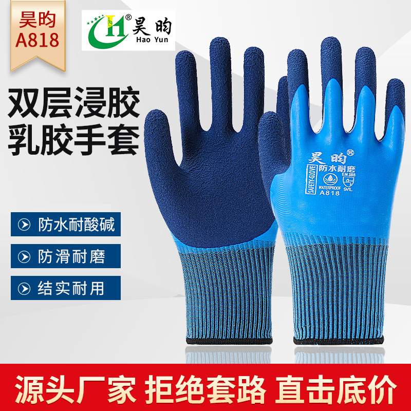 A818 방수 딥핑 장갑 내마모성 보호 작업 장갑 수생 미끄럼 방지 내마모성 딥핑 장갑 방수 장갑