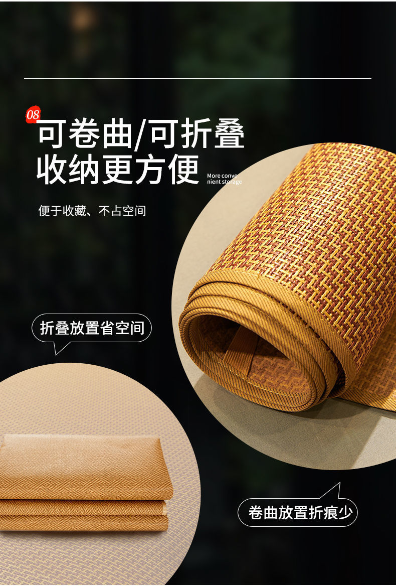 3피스 매트 세트 1.8m 침대 등나무 매트 가정용 밀짚 매트 여름 접이식 싱글 학생 기숙사 겨울과 여름 이중 용도로 유명합니다.스토어 가기