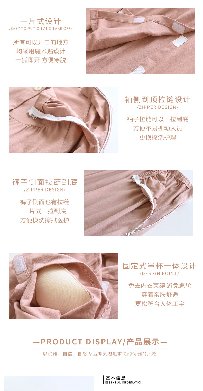 양쪽에 지퍼가 달린 남녀 간호복, 부러진 골절용 석고 간호팬츠, 편리한 착탈, 침대용 브라, 침술재활복스토어 가기