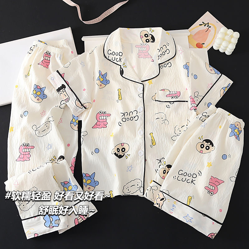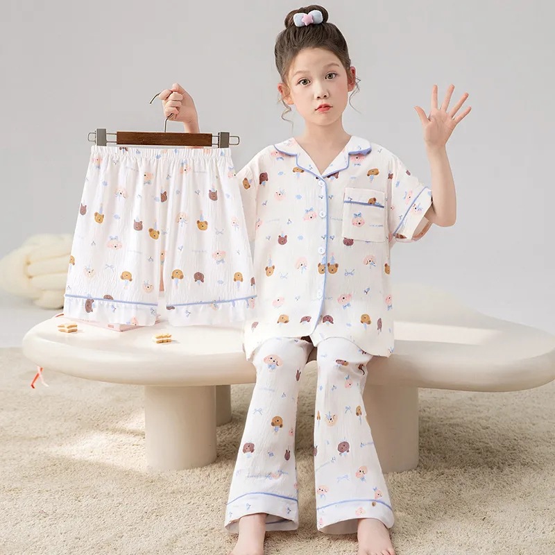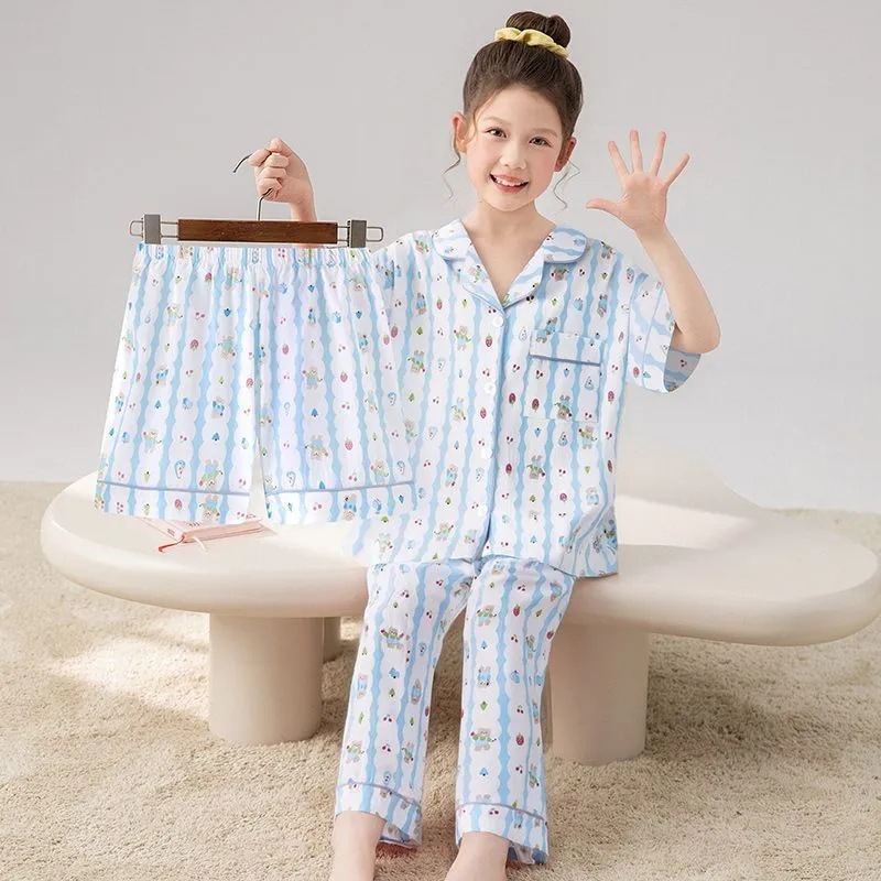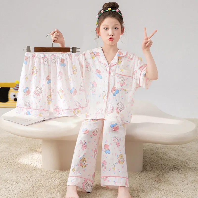 여자 잠옷 여름 어린이 3 피스 클라우드 코튼 반팔 중형 및 대형 어린이 여자 가정 의류 2025 새로운 여름 스타일