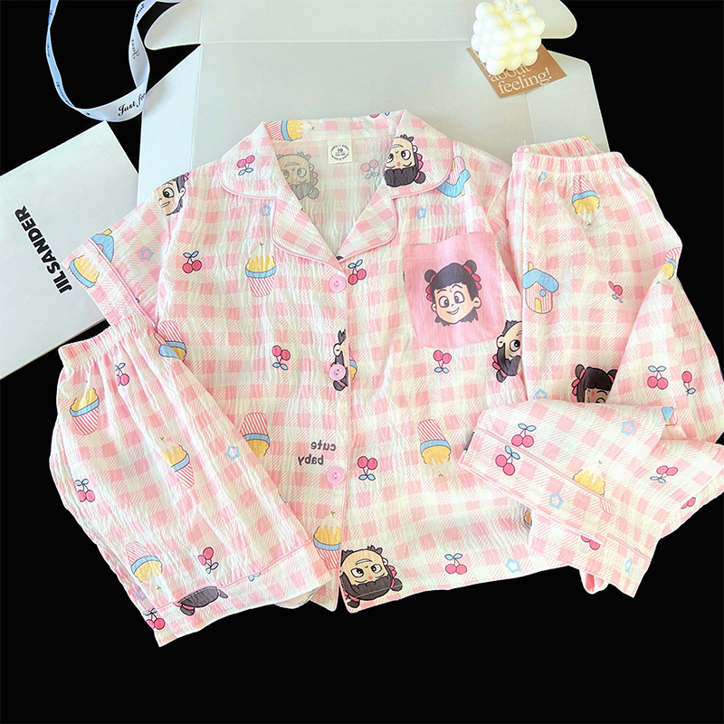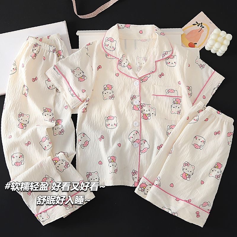 여자 잠옷 여름 어린이 3 피스 클라우드 코튼 반팔 중형 및 대형 어린이 여자 가정 의류 2025 새로운 여름 스타일스토어 가기