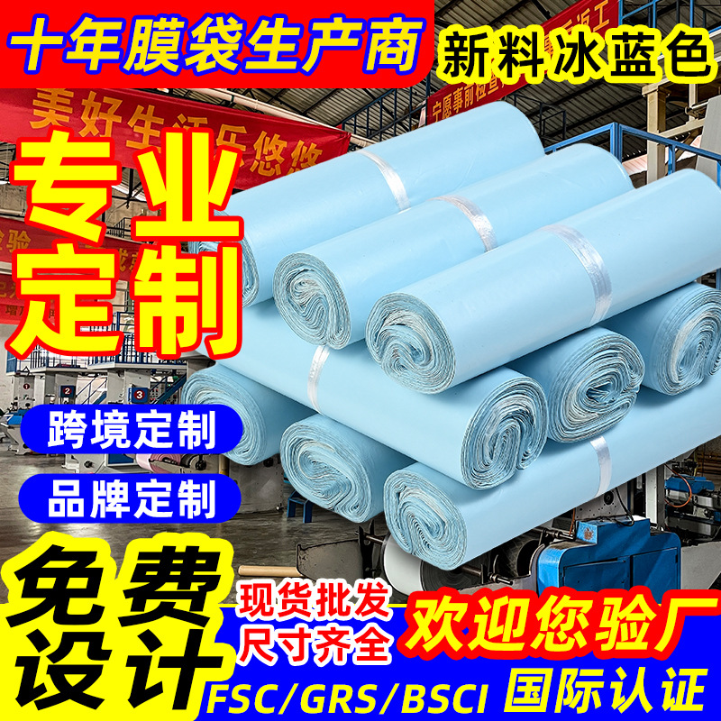 새로운 소재 아이스 블루 익스프레스 가방 두꺼운 PE 방수 포장 가방 전자 상거래 포장 맞춤 가방 로고 제조 업체 도매스토어 가기