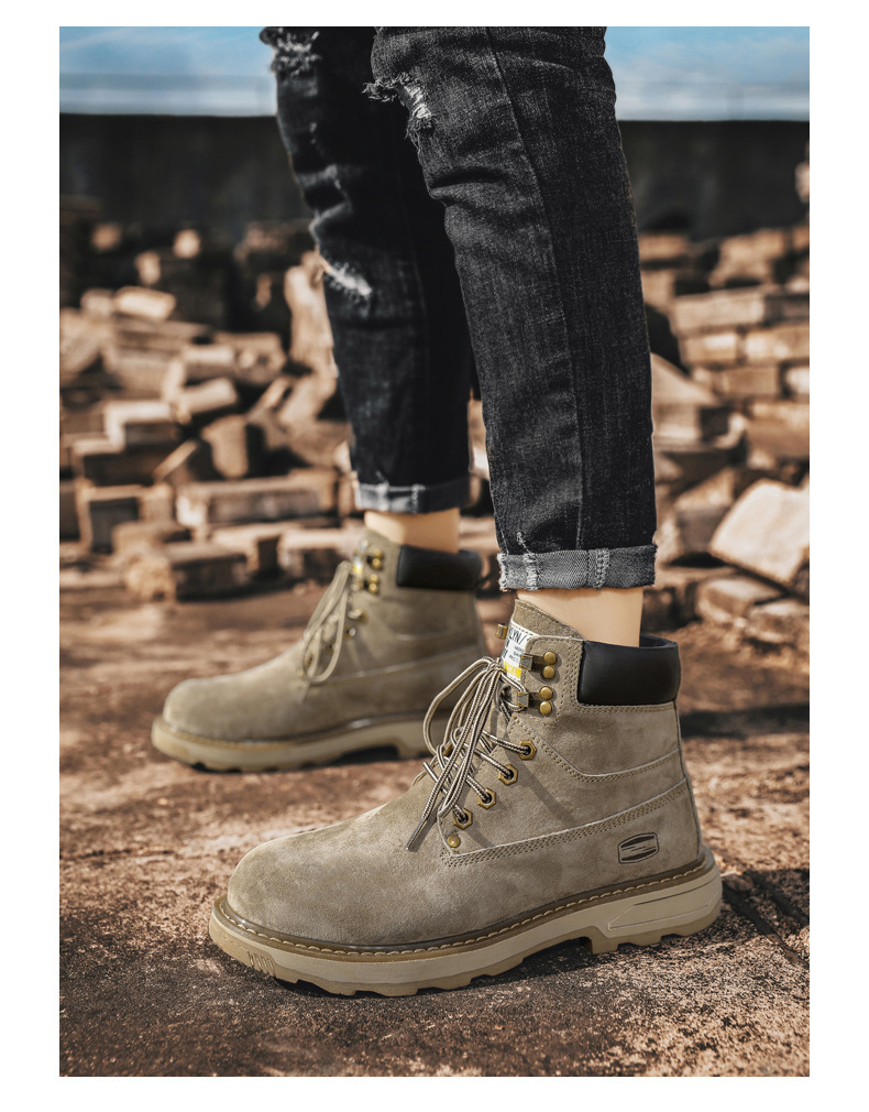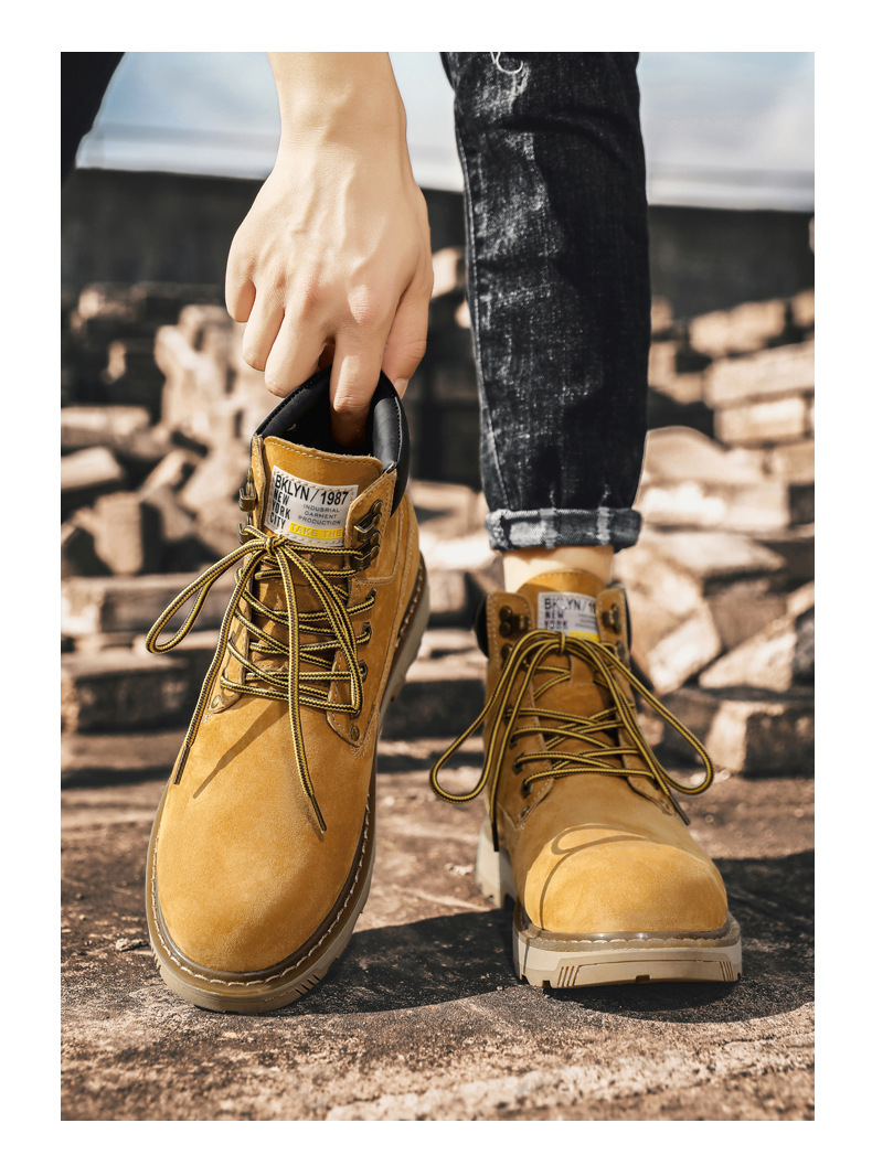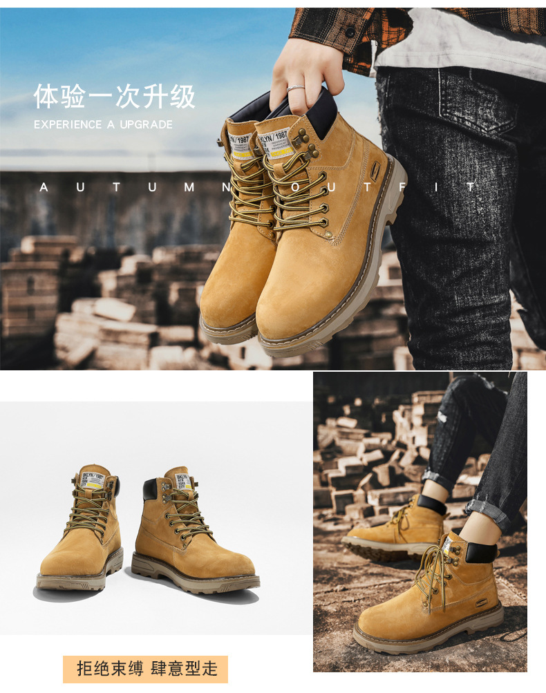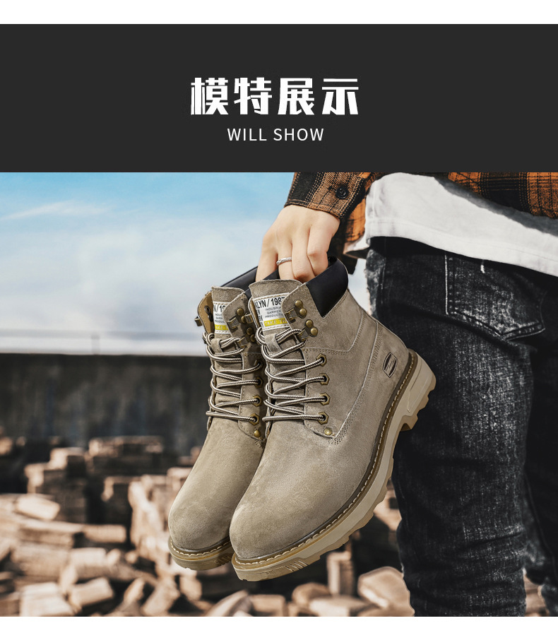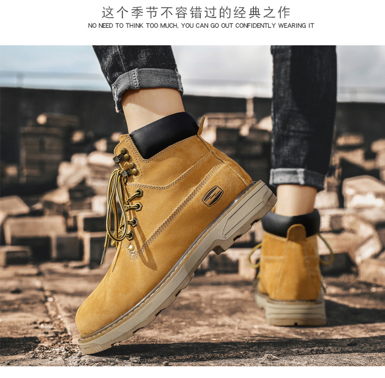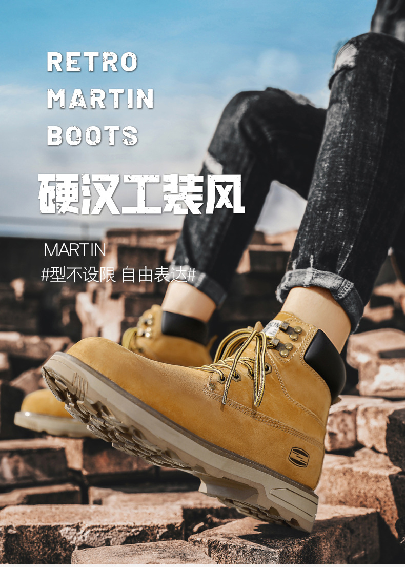 작업 부츠 남자 2025 새로운 가을, 겨울 하이 탑 정품 가죽 마틴 부츠 남자 영국 스타일 두꺼운 밑창 미끄럼 방지 다목적 레드 부츠스토어 가기