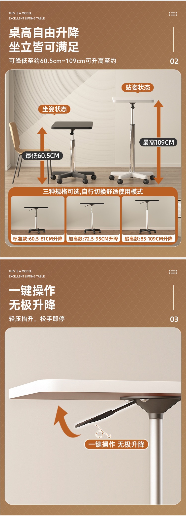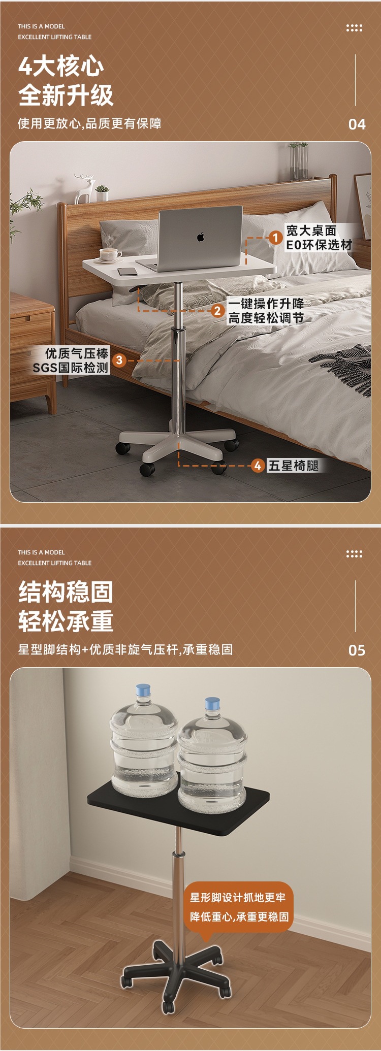 리프팅 테이블, 바퀴가 달린 사무실 컴퓨터 테이블, 침대 옆 테이블, 이동식 스탠딩 작업대, 라이브 방송 리프팅 테이블
