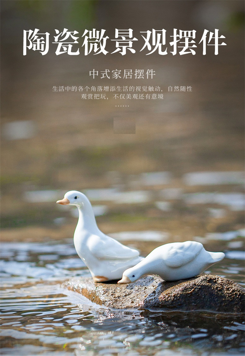 세라믹 시뮬레이션 작은 오리 장식품, 창의적인 동물, 귀여운 작은 흰색 오리, 안뜰 화분, 수조 장식, 수경 조경