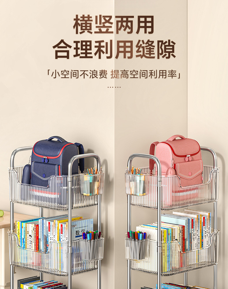 책을위한 아크릴 학교 가방 보관 랙 바닥 스탠딩 모바일 트롤리 책상 아래 캐비닛 홈 다층 보관 랙
