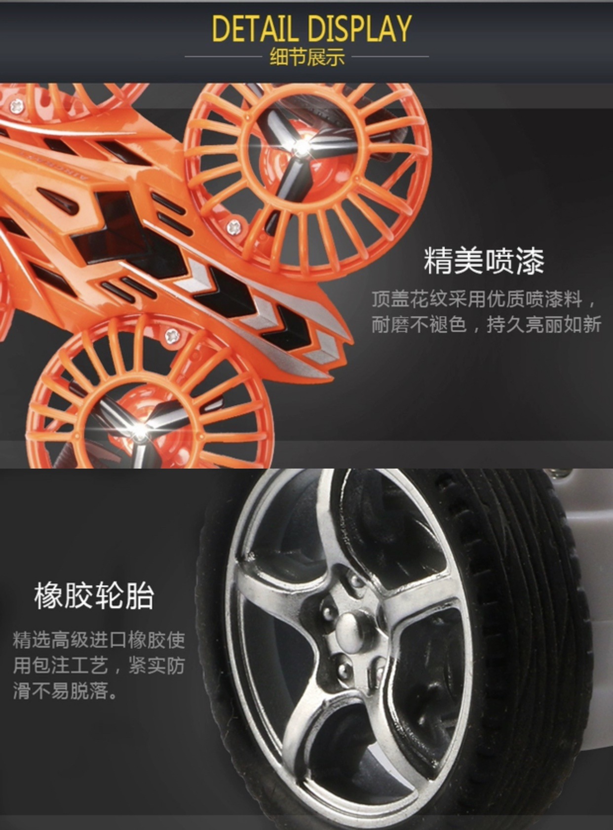• 후드-주황색 관성 4축 항공기 차량 포함