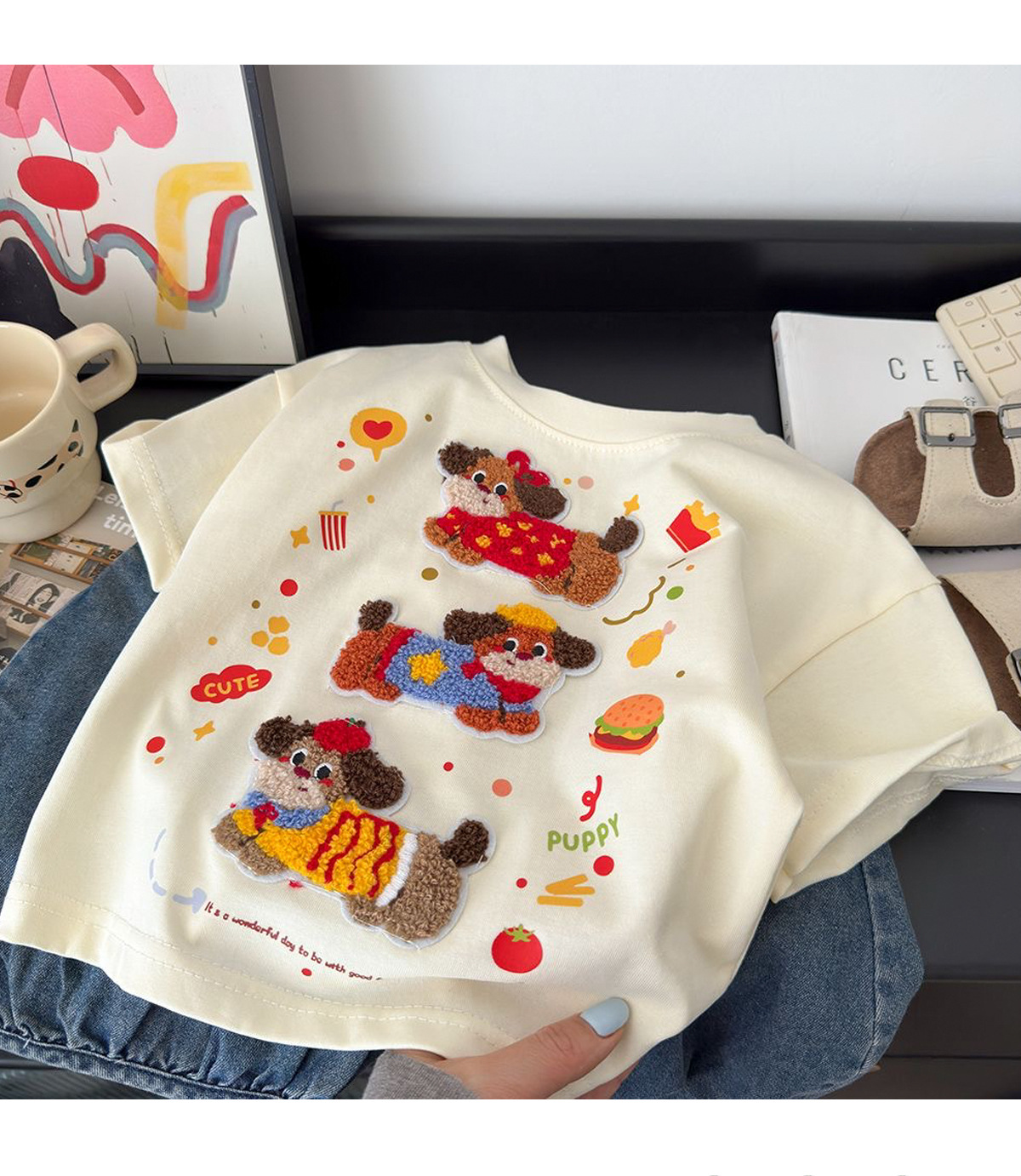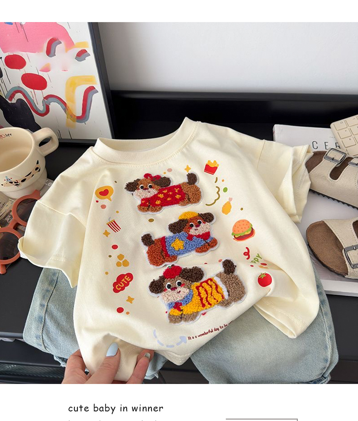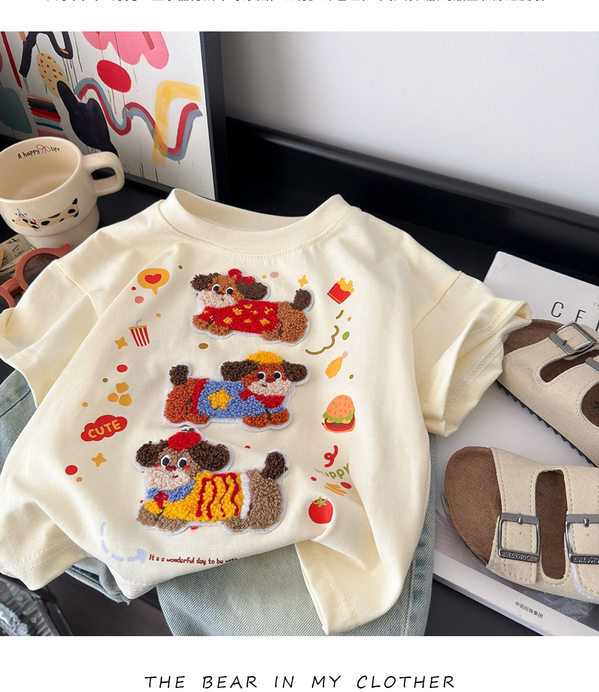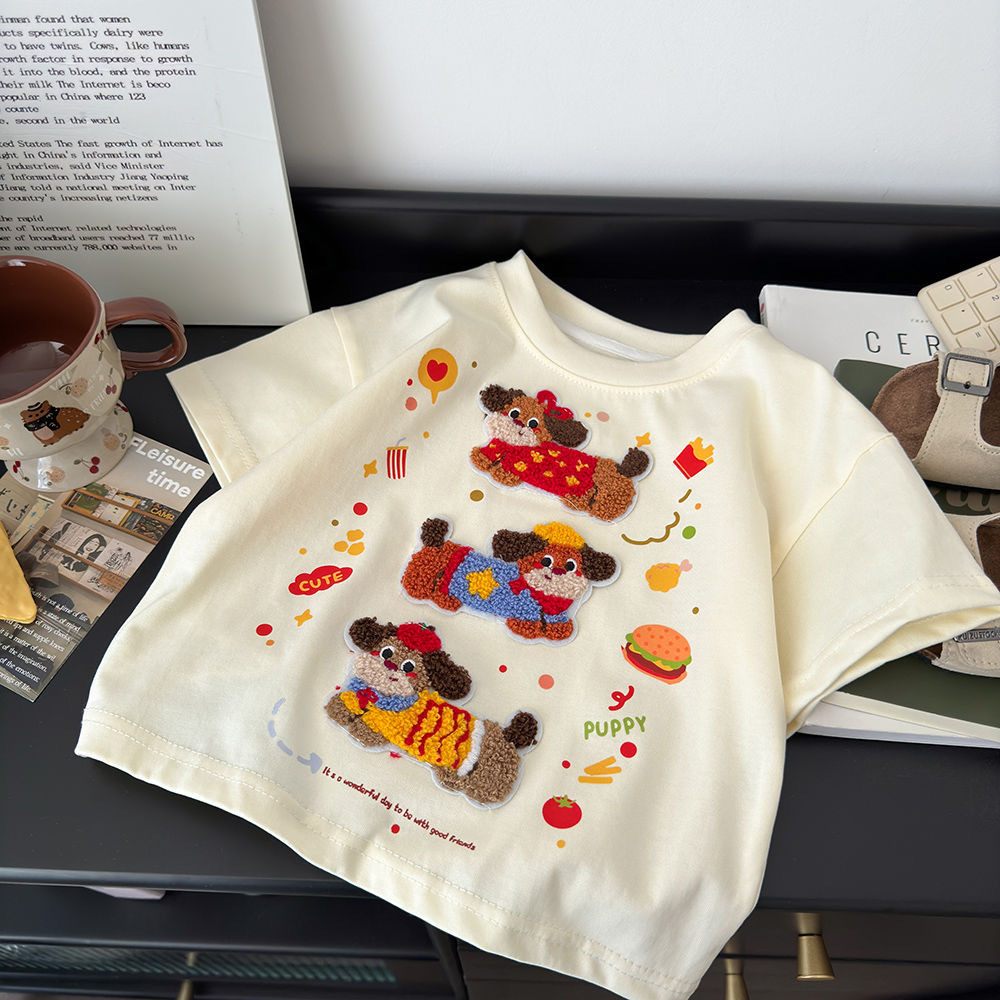 어린이 여름 반팔 소년과 소녀 순수 코튼 만화 티셔츠 아기 수건 수 놓은 서양식 여름 탑 유행 티셔츠스토어 가기