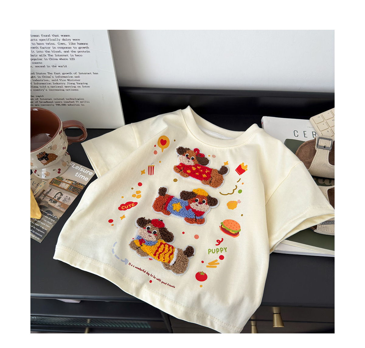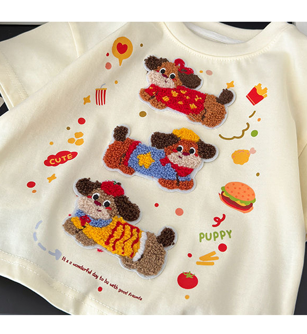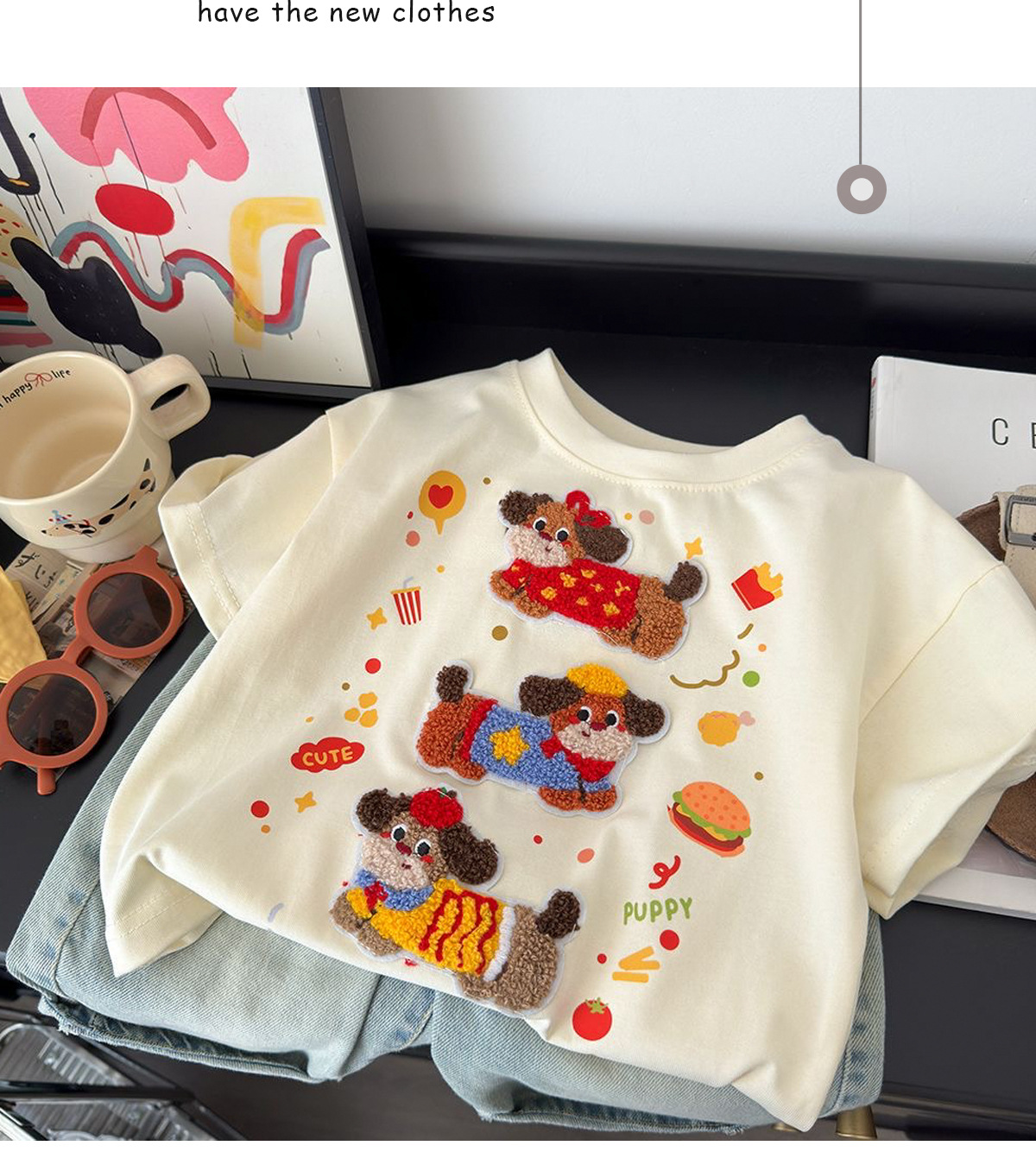 어린이 여름 반팔 소년과 소녀 순수 코튼 만화 티셔츠 아기 수건 수 놓은 서양식 여름 탑 유행 티셔츠스토어 가기