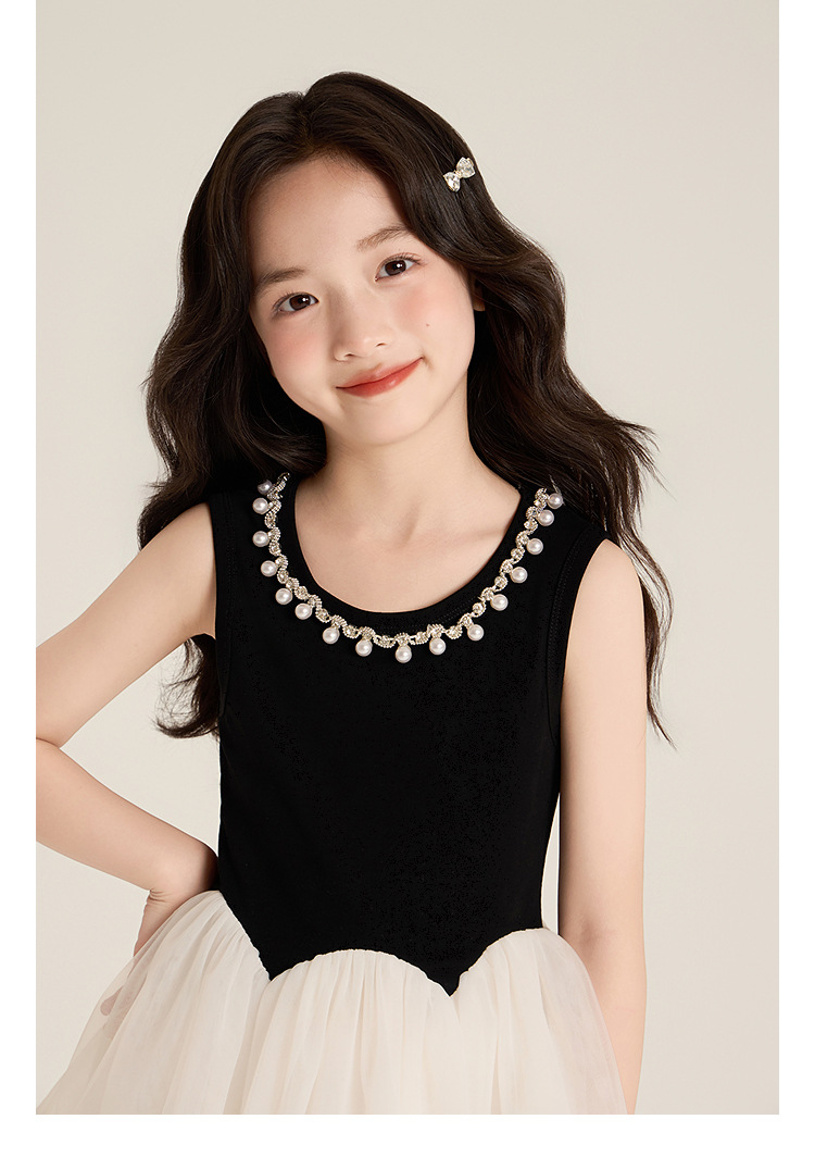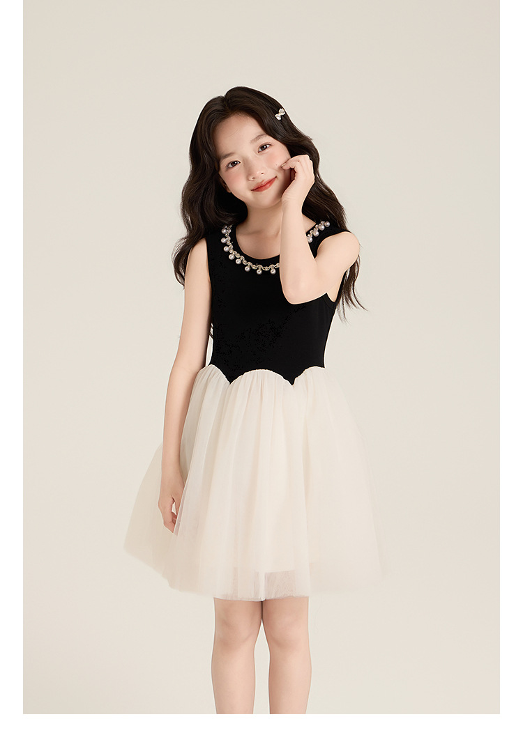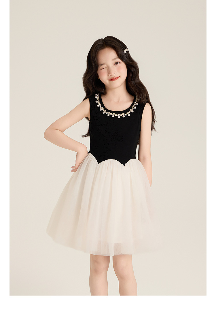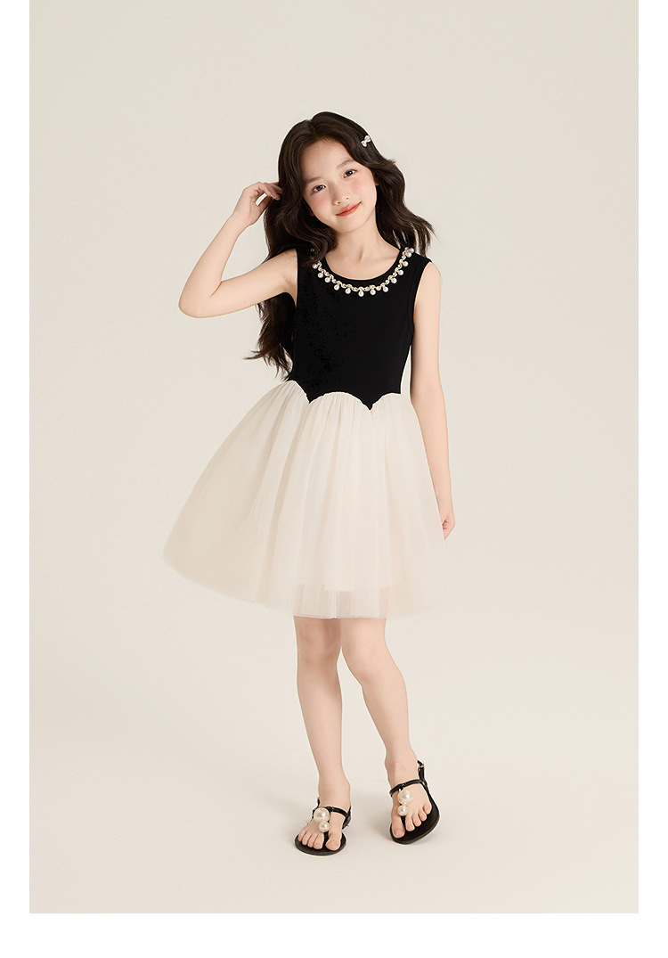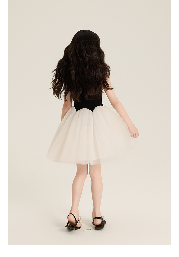 Amybaby 여자 드레스 여름 2025 새로운 프랑스 스타일 연예인 흑백 스플 라이스 민소매 공주 드레스