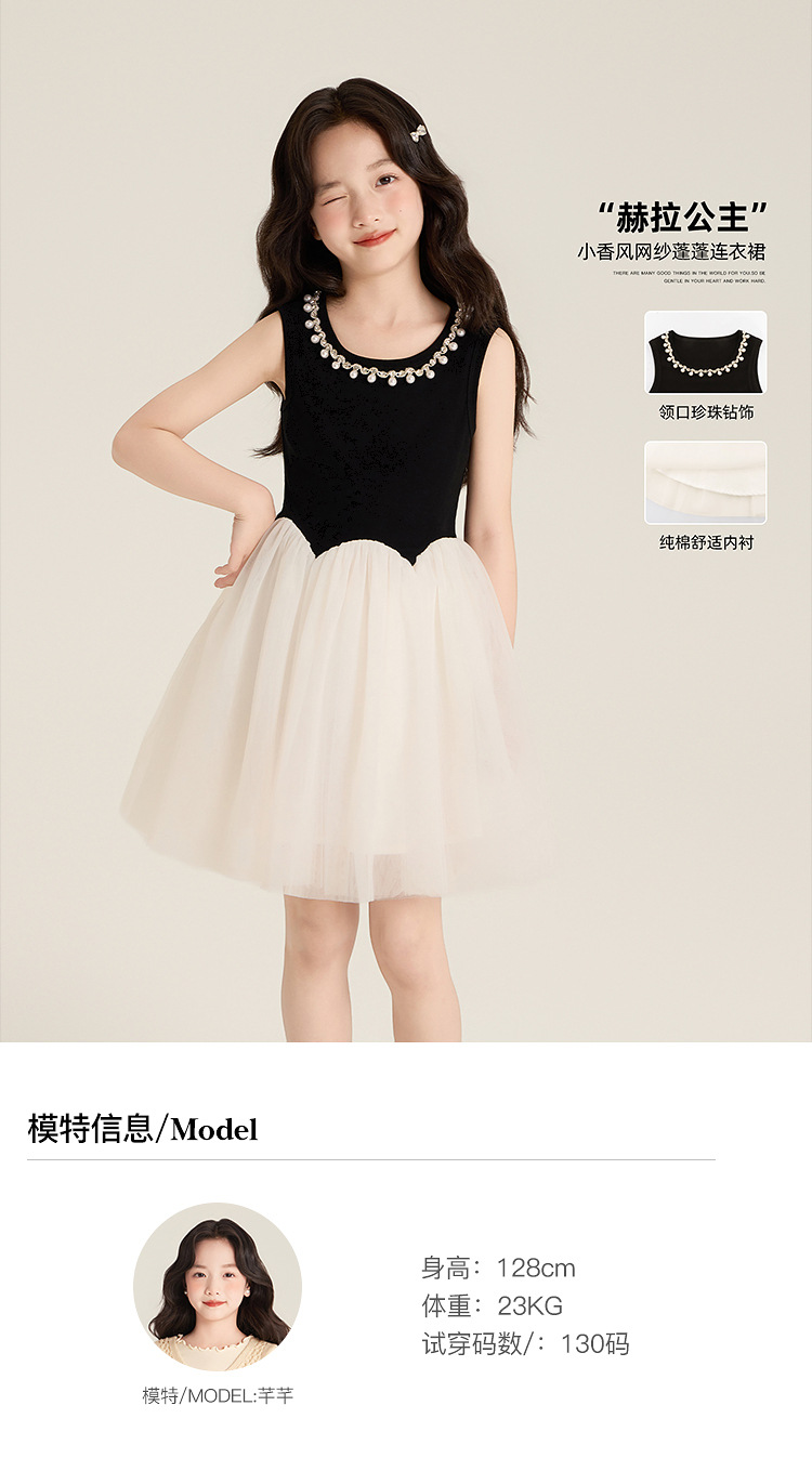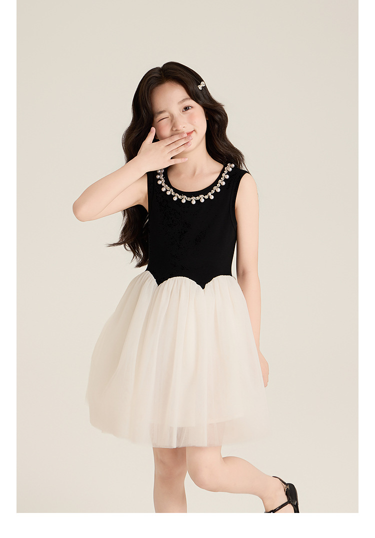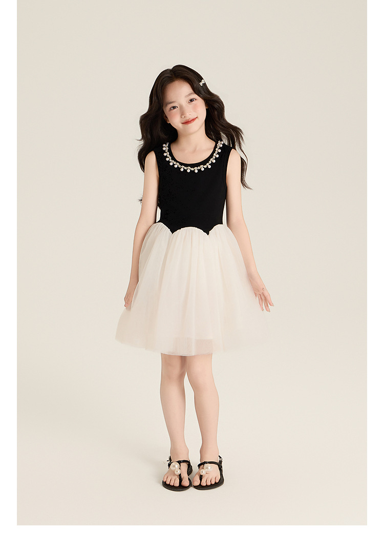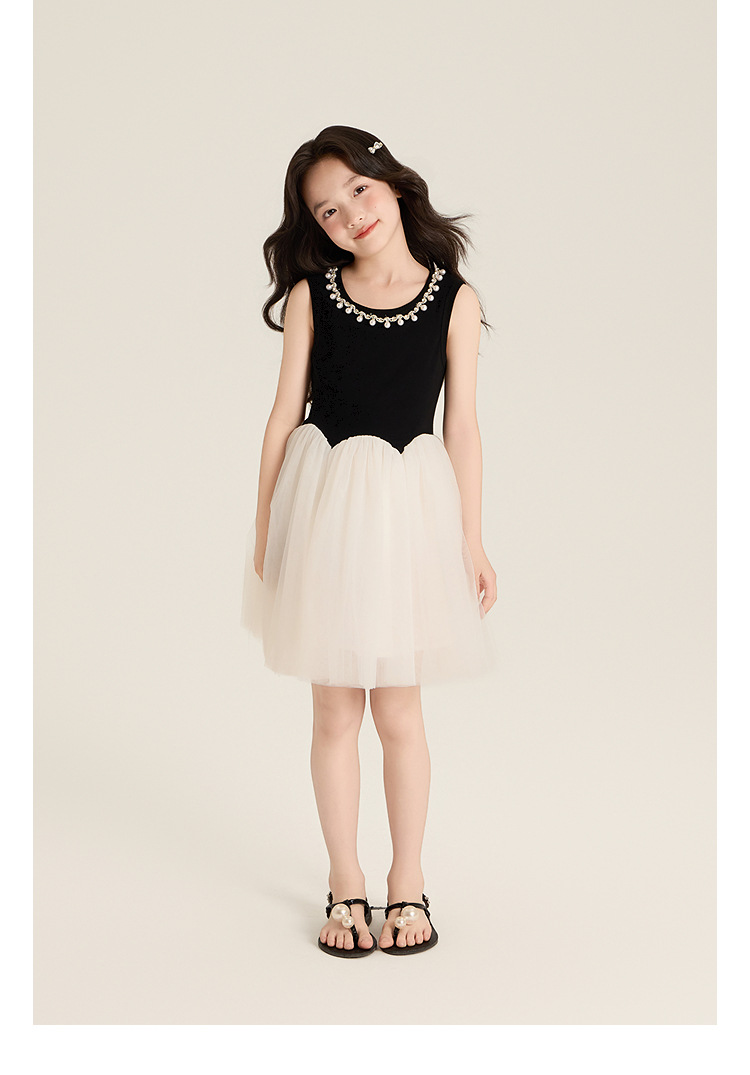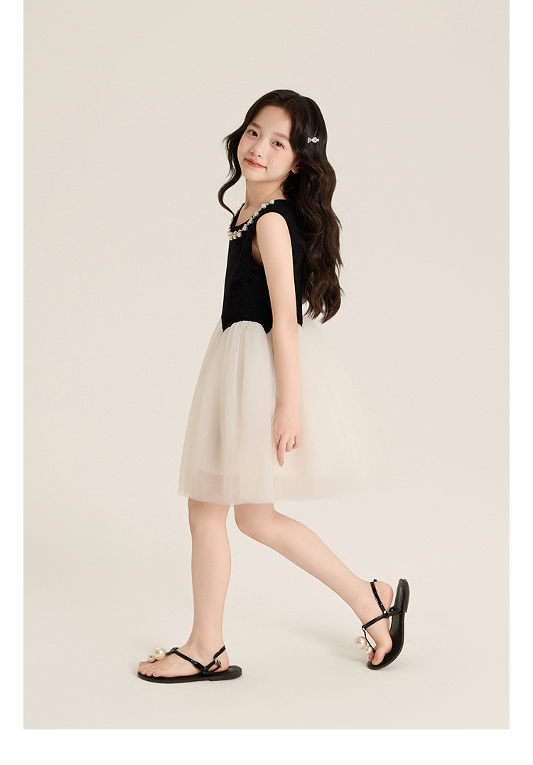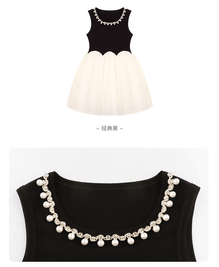 Amybaby 여자 드레스 여름 2025 새로운 프랑스 스타일 연예인 흑백 스플 라이스 민소매 공주 드레스스토어 가기