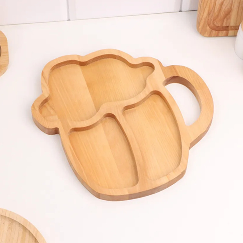 단단한 나무 크리 에이 티브 나무 디너 플레이트 맥주 컵 모양 스낵 트레이 애프터눈 티 말린 과일 견과류 트레이 도매스토어 가기