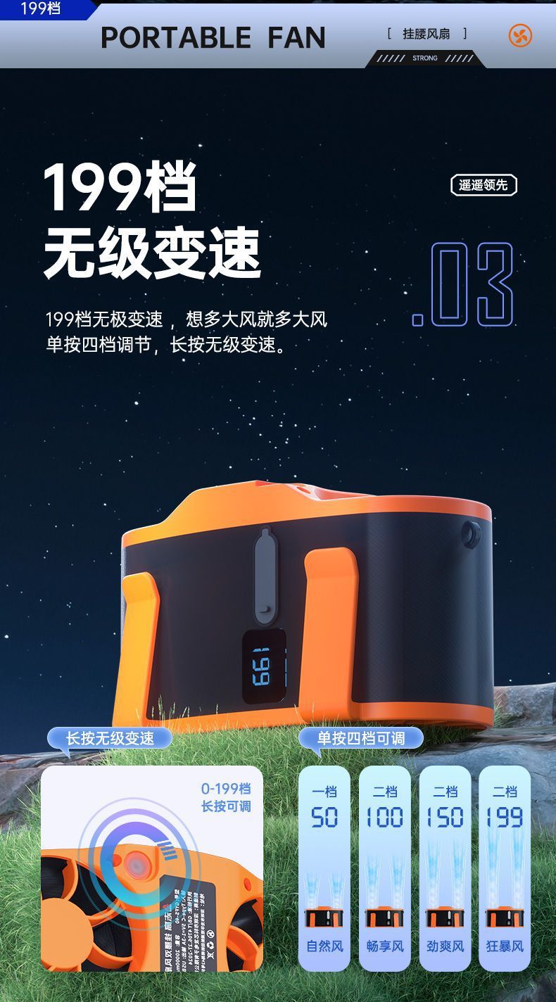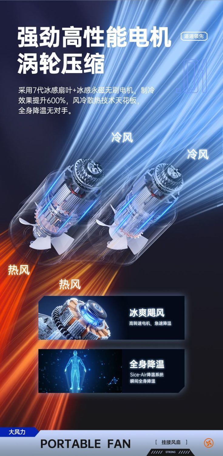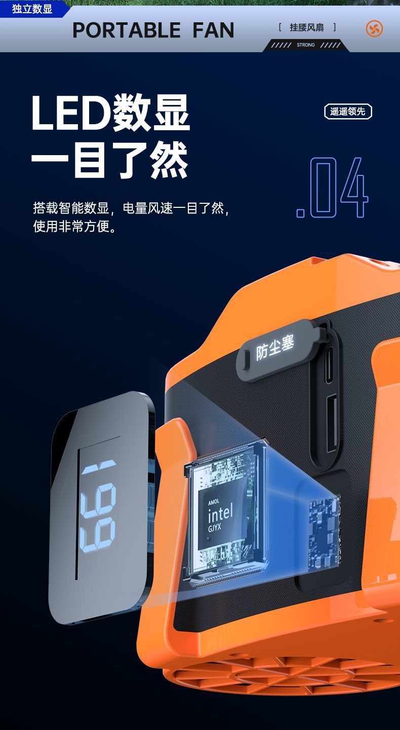Chigo 허리걸이형 팬 냉각 브러시리스 모터 매우 긴 배터리 수명 휴대용 작업 냉풍 냉각 목걸이형 팬
