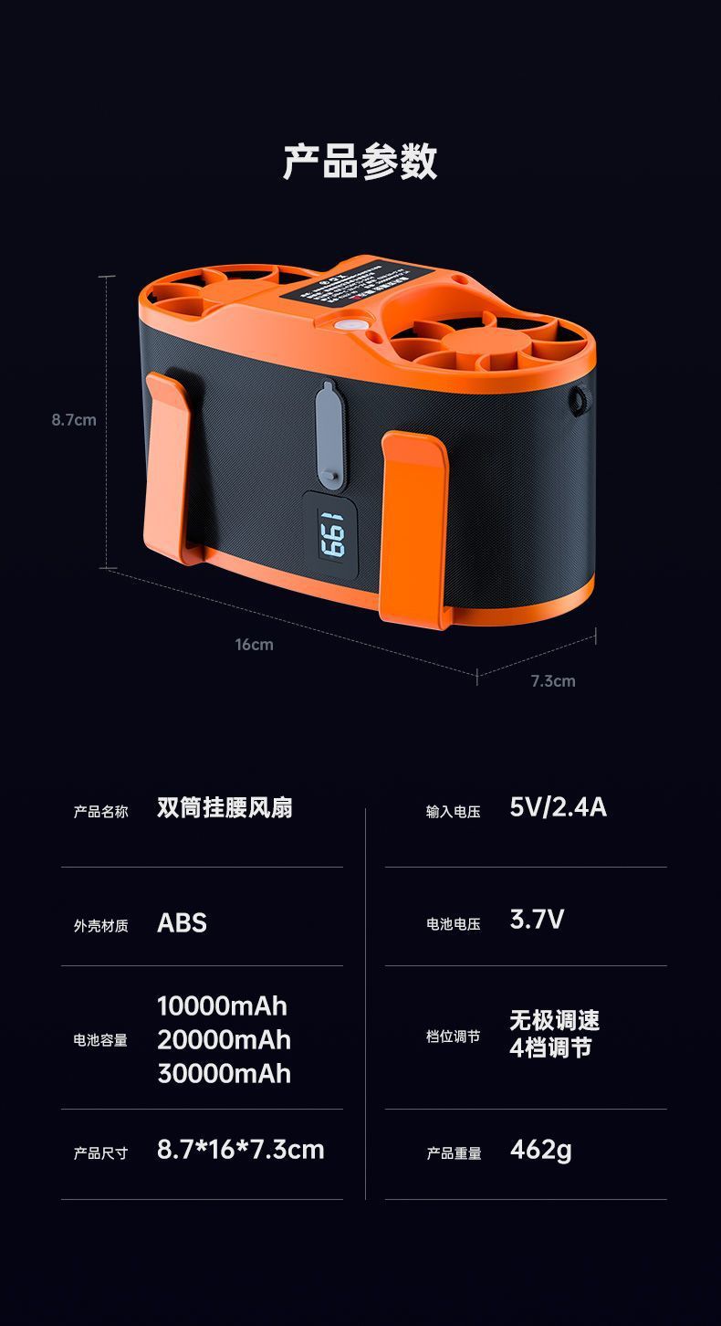 Chigo 허리걸이형 팬 냉각 브러시리스 모터 매우 긴 배터리 수명 휴대용 작업 냉풍 냉각 목걸이형 팬스토어 가기