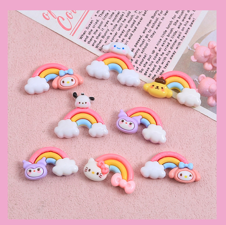 만화 작은 동물 무지개 크림 접착제 diy 수제 머리핀 냉장고 자석 재료 패키지 수지 액세서리 도매