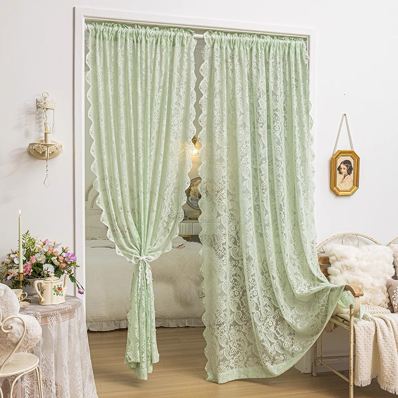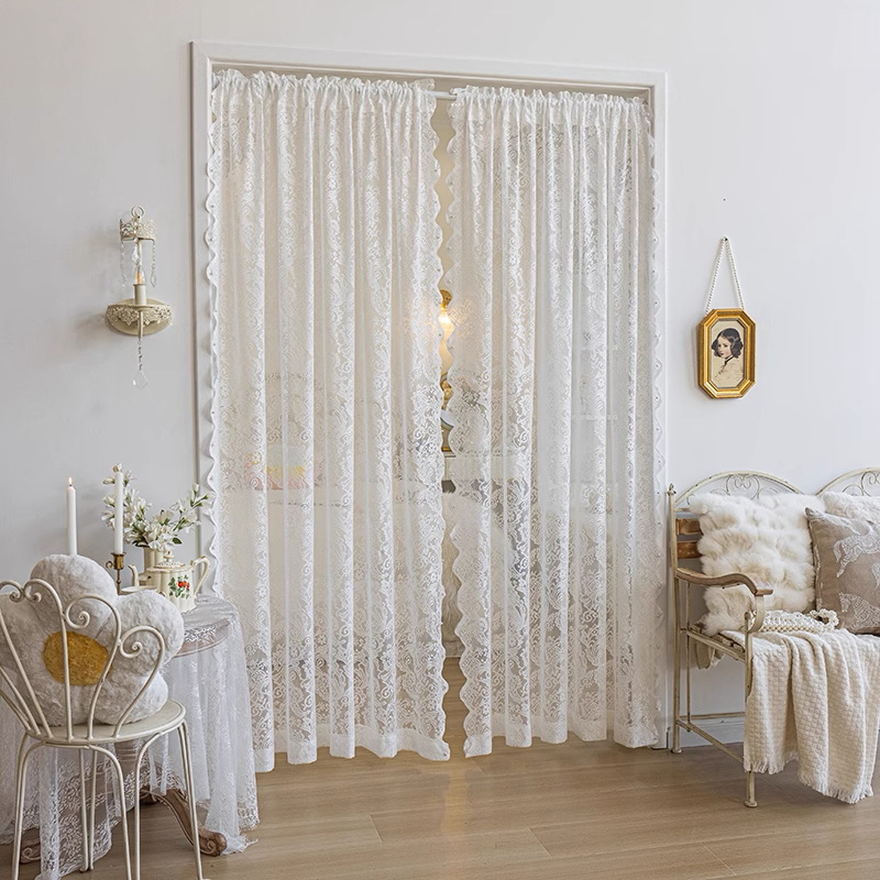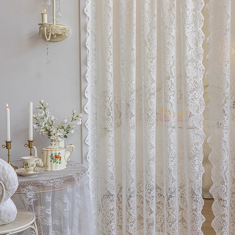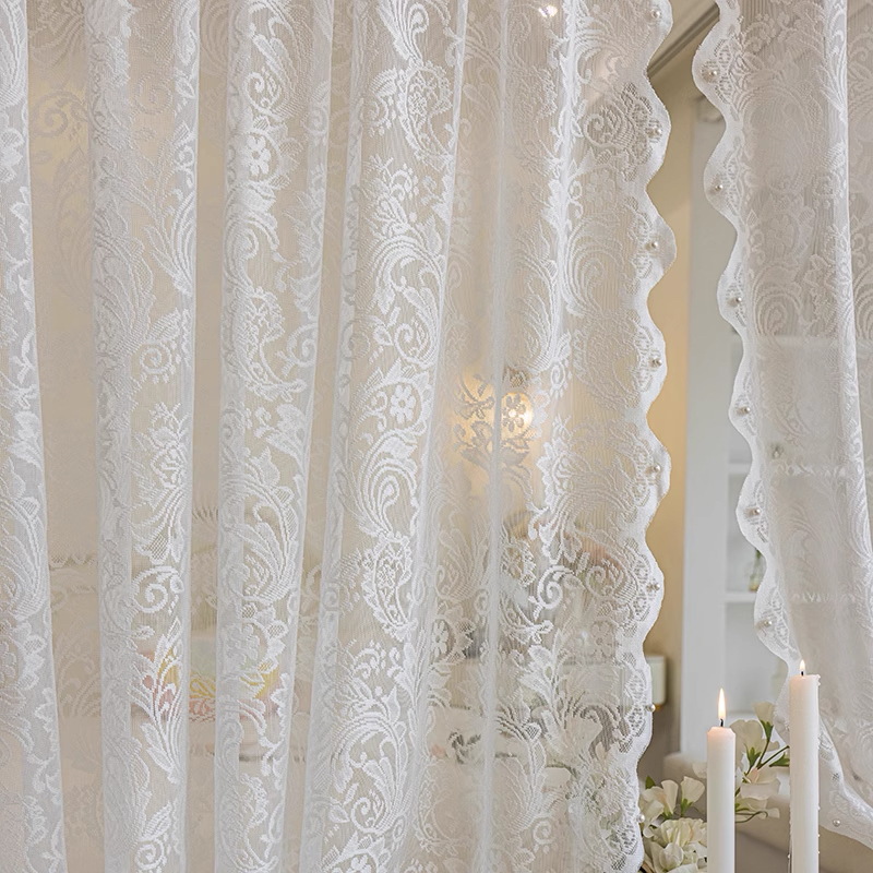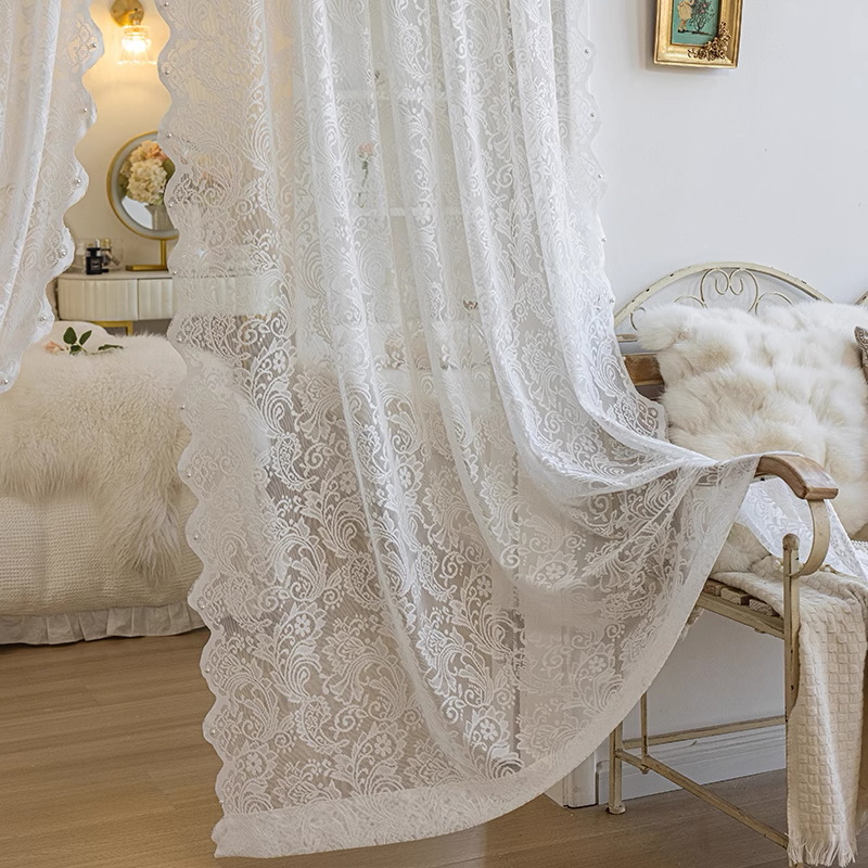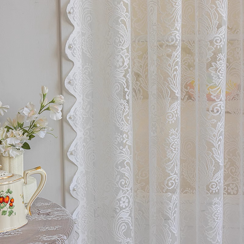 프랑스 레이스 창문 커튼, 거실용 흰색 시스루 커튼, 빛은 투과하지만 사람을 보이지 않게 하는 침실용 창문 커튼, 무타공 비즈 장식 피닉스테일 시스루 커튼