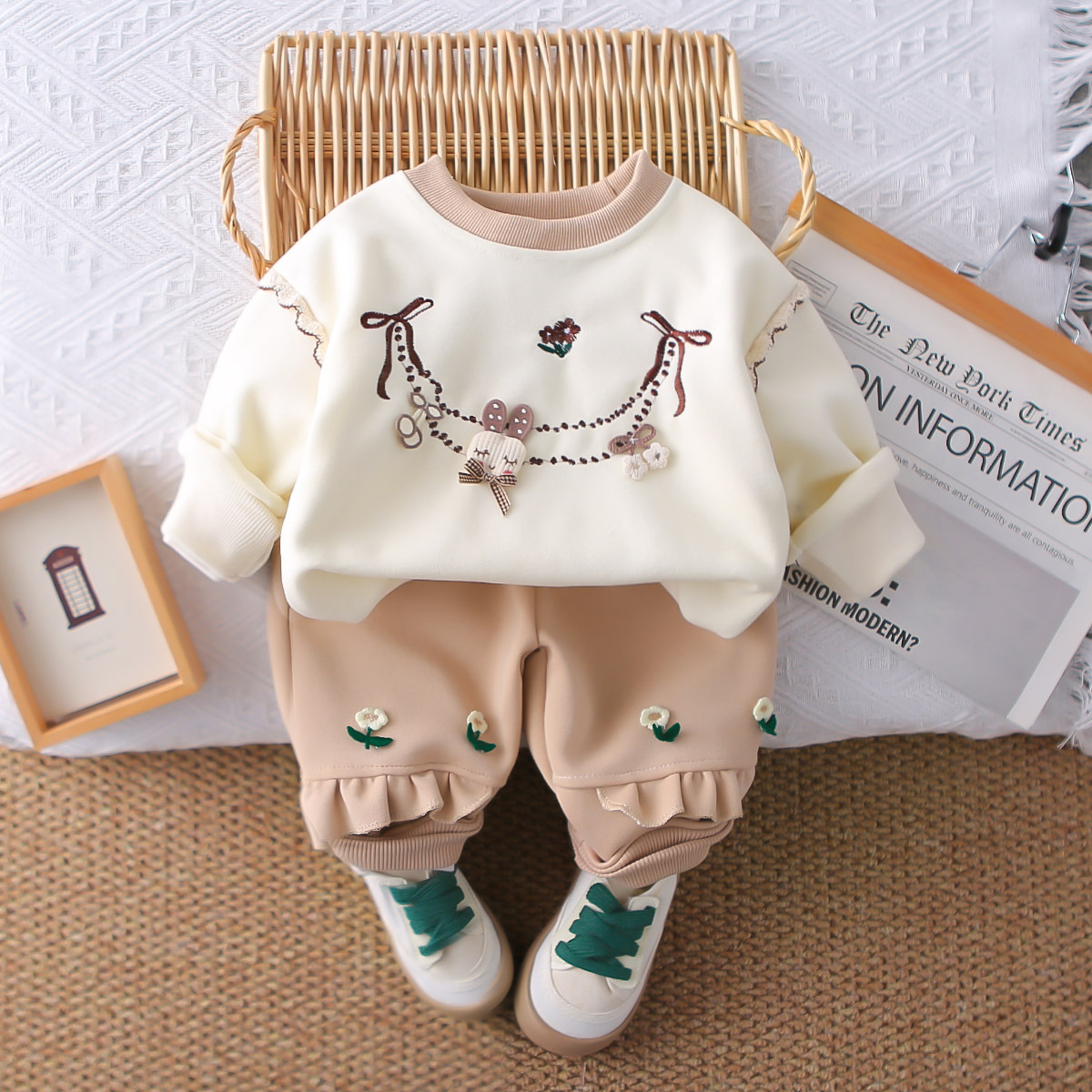 여자 가을 의류 세트 2025 새로운 어린이 캐주얼 스타일 아기 봄, 가을 유행 운동복 투피스 아동 의류스토어 가기
