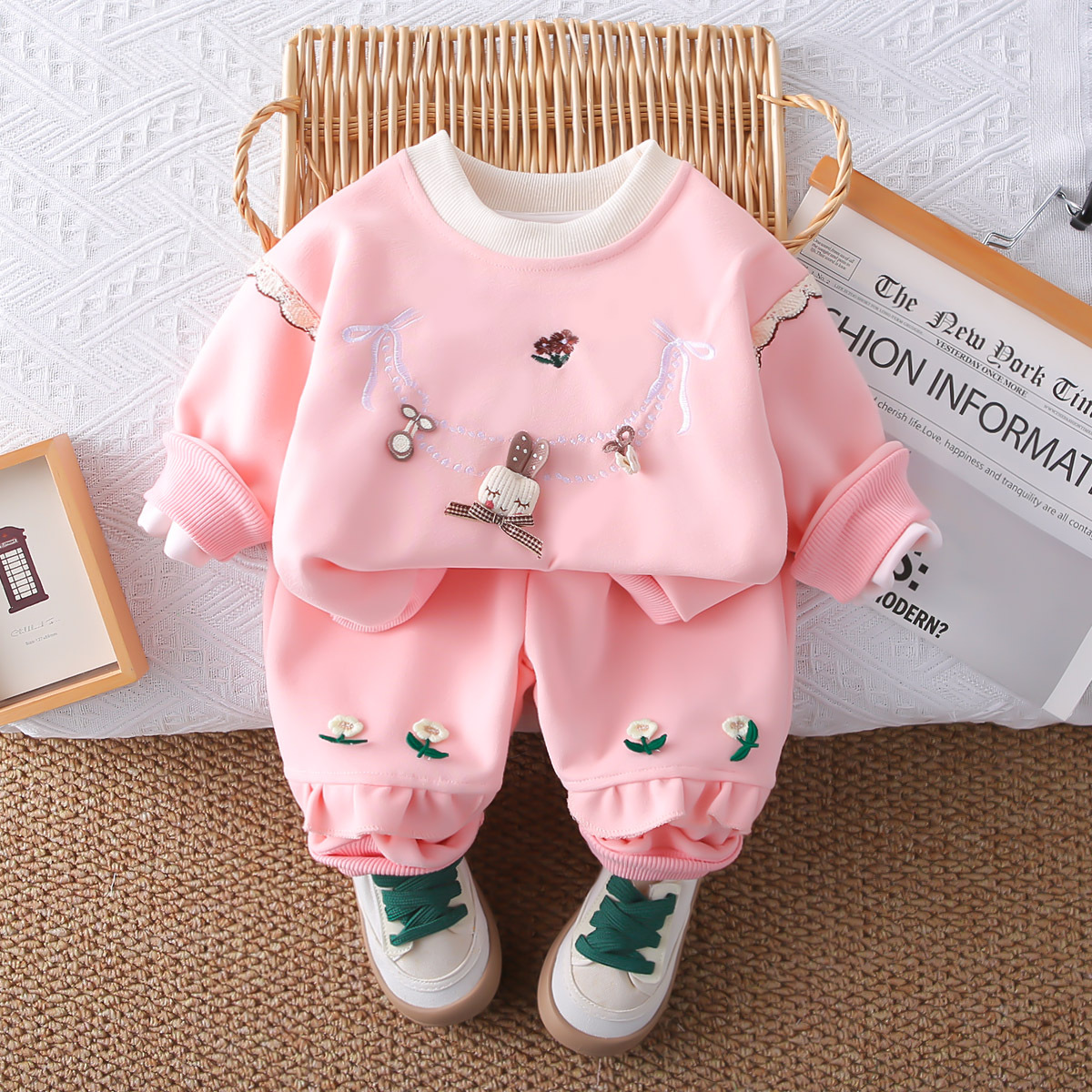 여자 가을 의류 세트 2025 새로운 어린이 캐주얼 스타일 아기 봄, 가을 유행 운동복 투피스 아동 의류