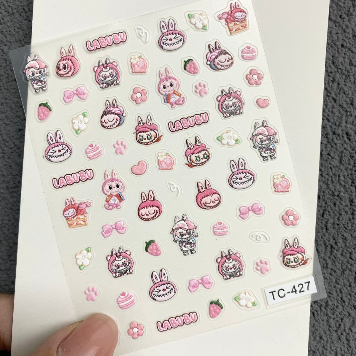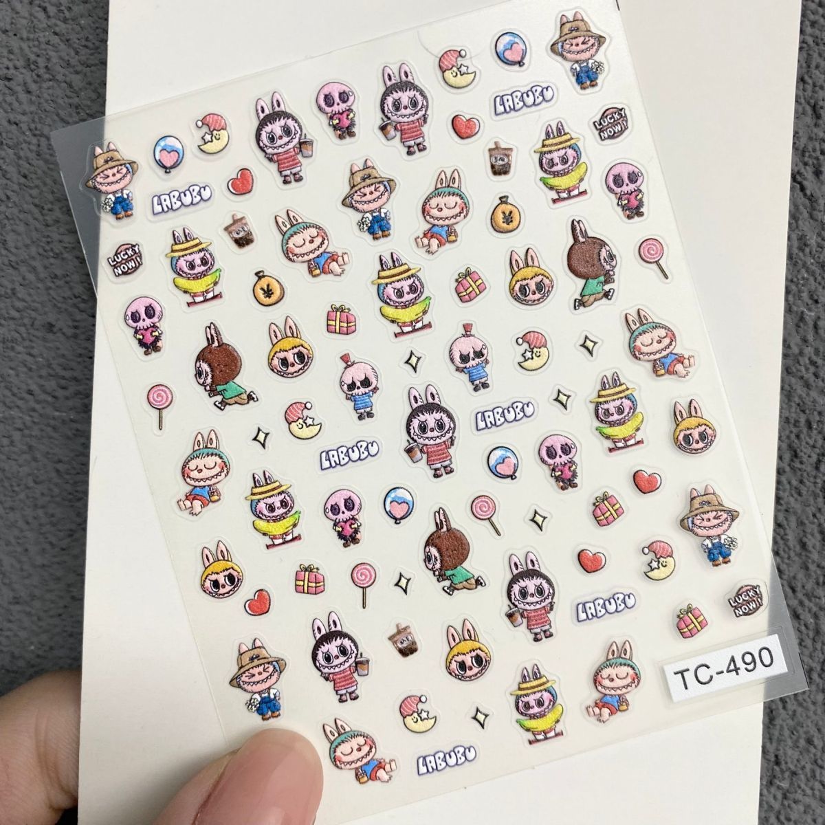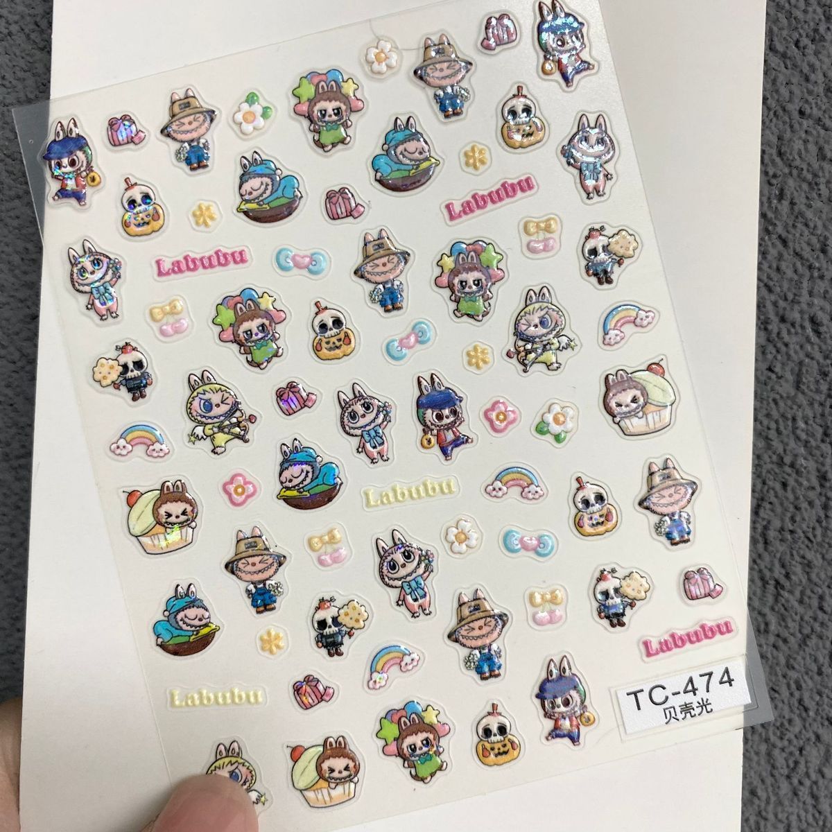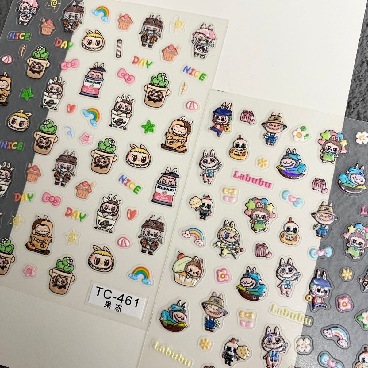 귀여운 labubu 양각 입체 네일 아트 스티커 labubu 크리 에이 티브 diy 핸드북 휴대 전화 카메라 접착 스티커스토어 가기