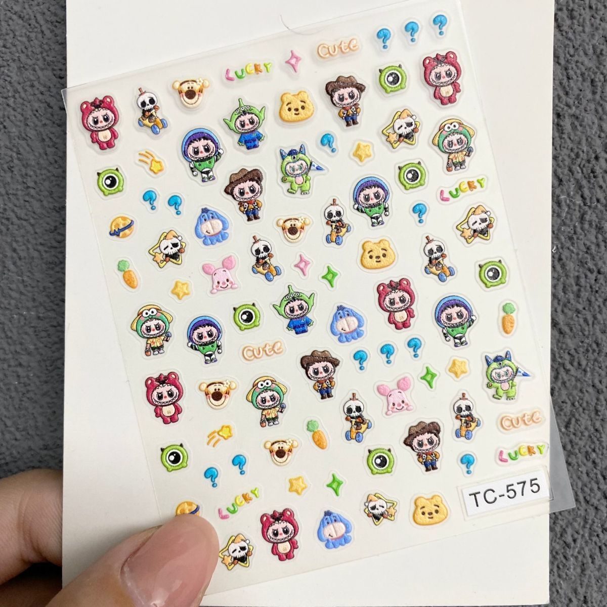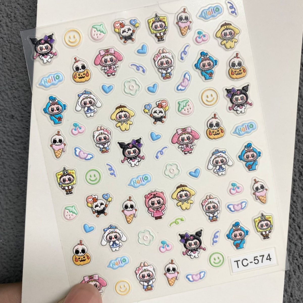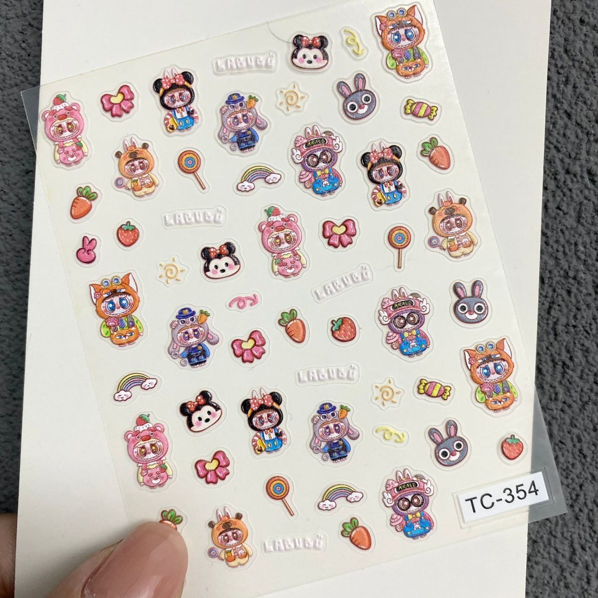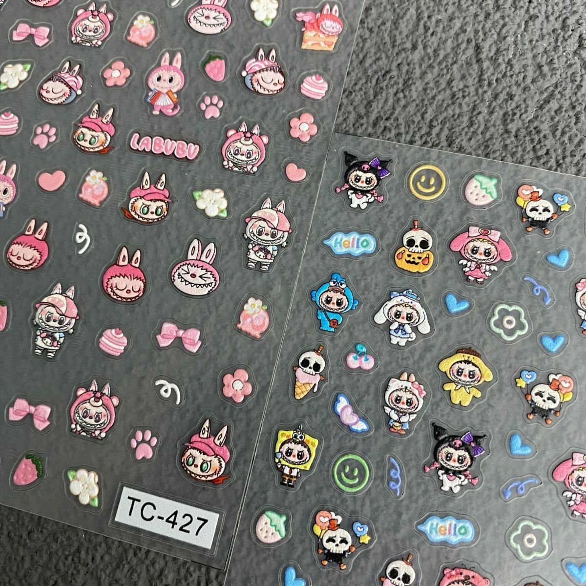귀여운 labubu 양각 입체 네일 아트 스티커 labubu 크리 에이 티브 diy 핸드북 휴대 전화 카메라 접착 스티커스토어 가기