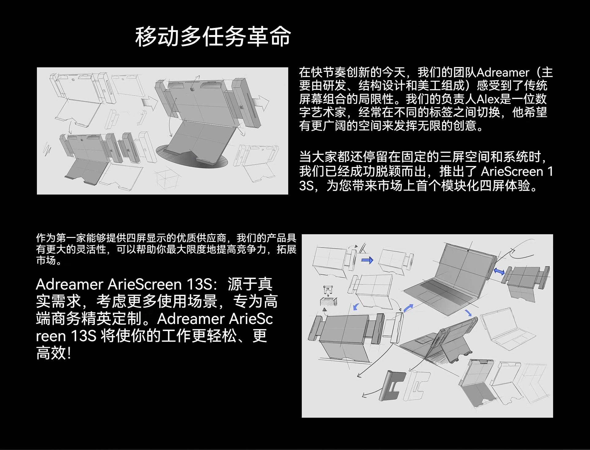 • 듀얼 스크린/ 13.3inch /3개의 스크린이 하나로 & 3개의 스크린 독립 디스플레이