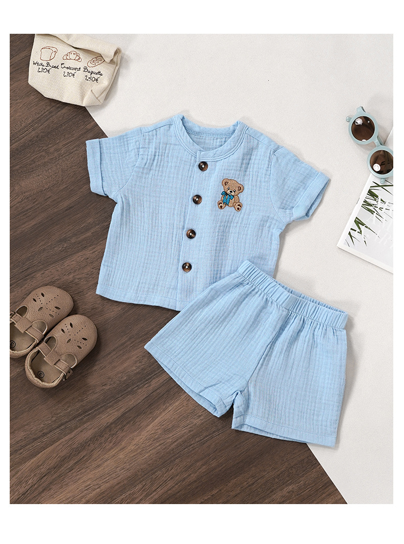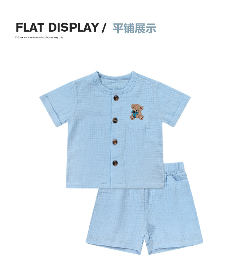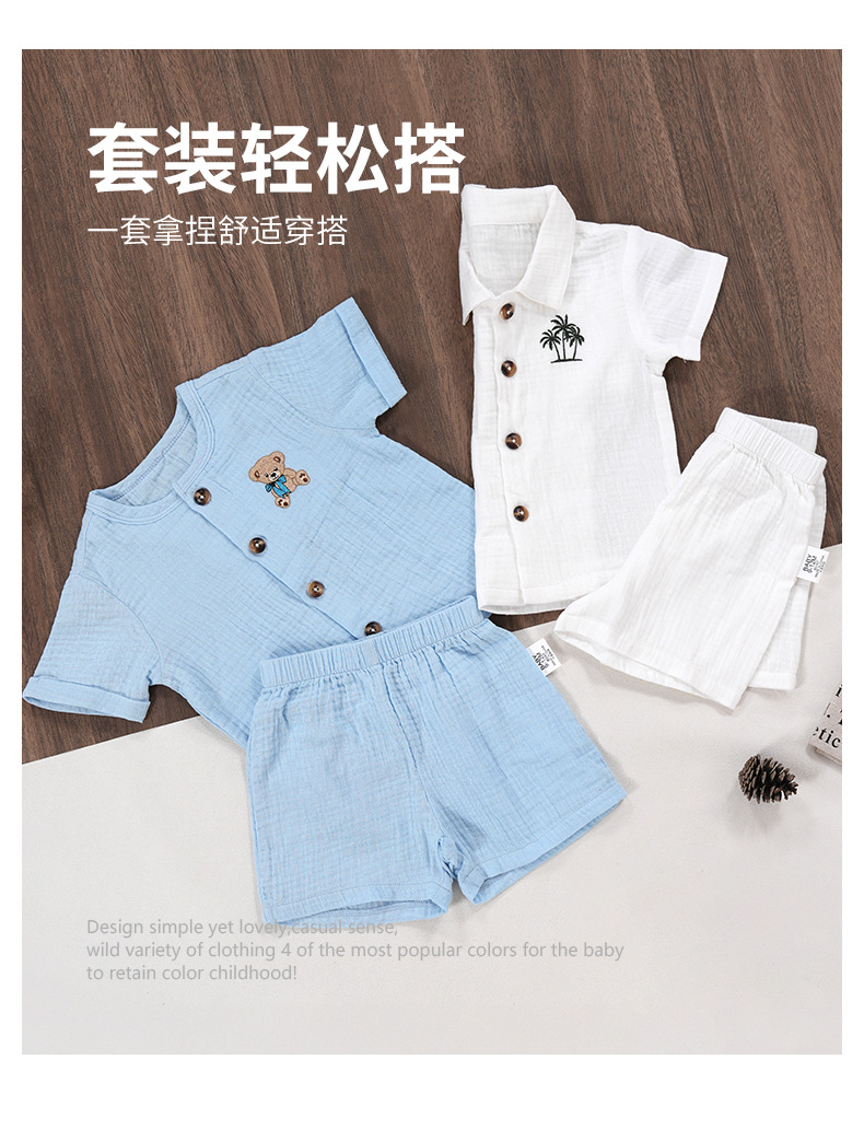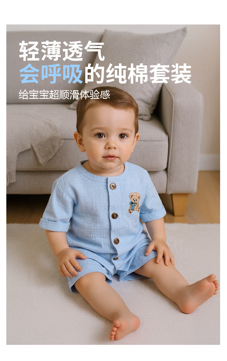 Minizone 어린이 정장 순수 코튼 베이비 여름 얇은 옷 남성과 여성의 아기 옷 여름 반팔 반바지 아동 의류스토어 가기