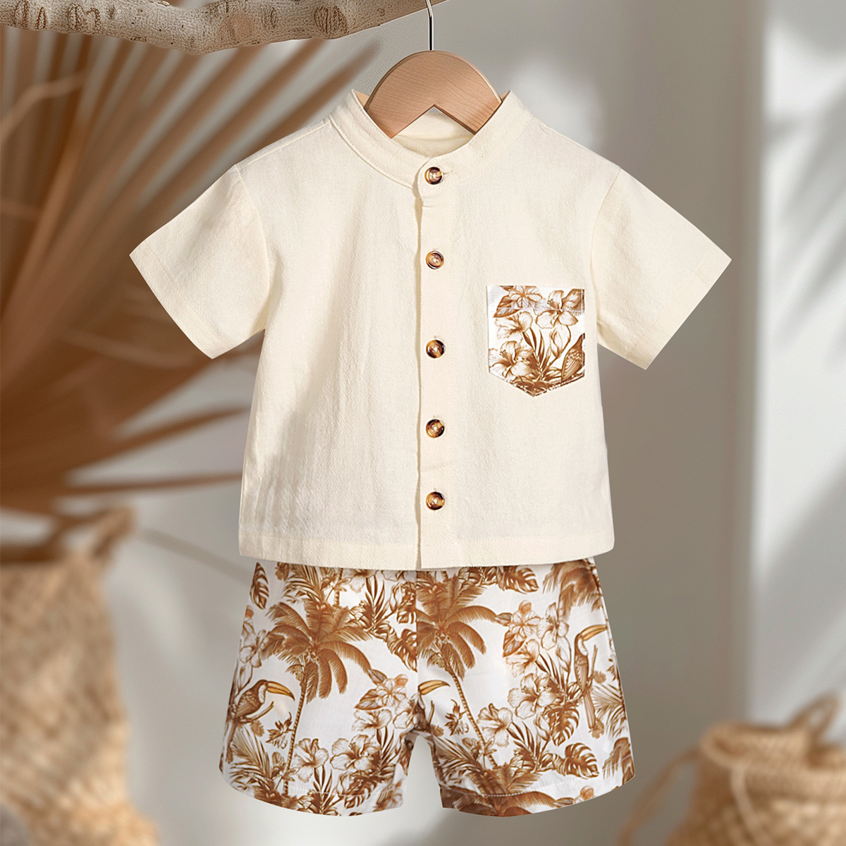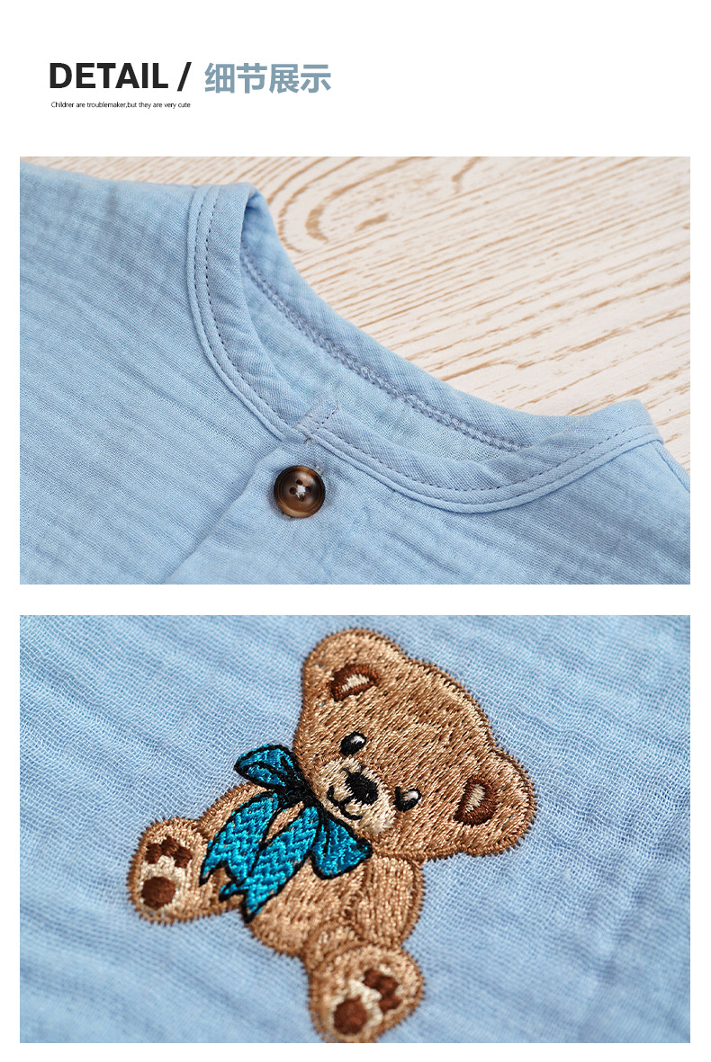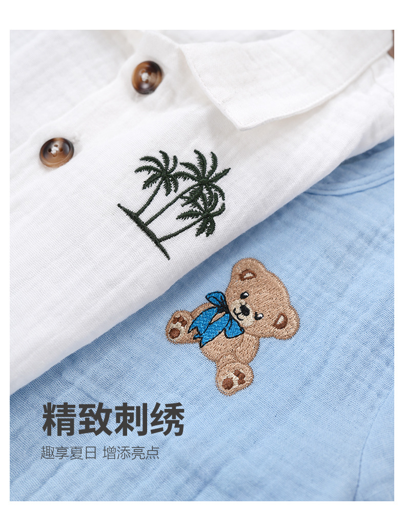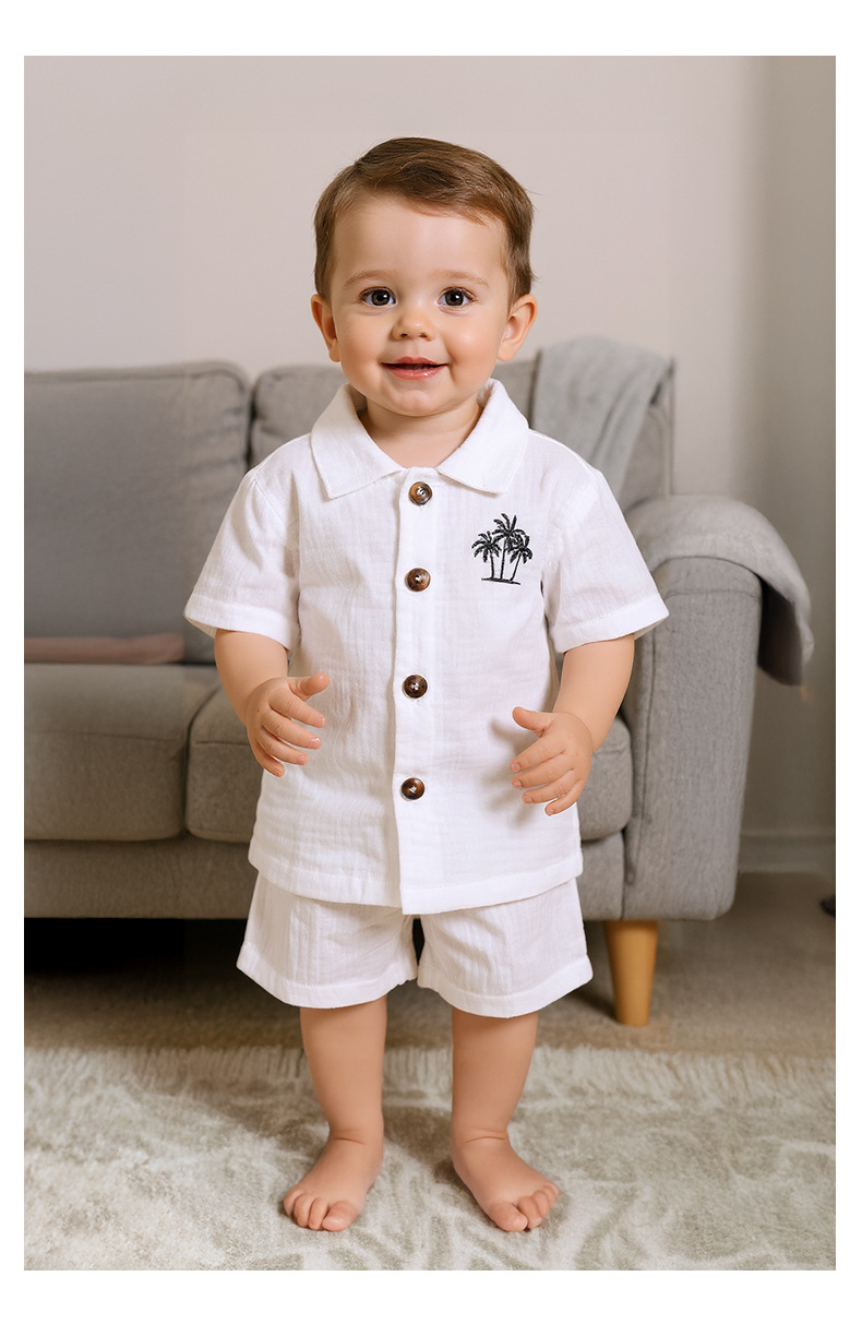 Minizone 어린이 정장 순수 코튼 베이비 여름 얇은 옷 남성과 여성의 아기 옷 여름 반팔 반바지 아동 의류스토어 가기