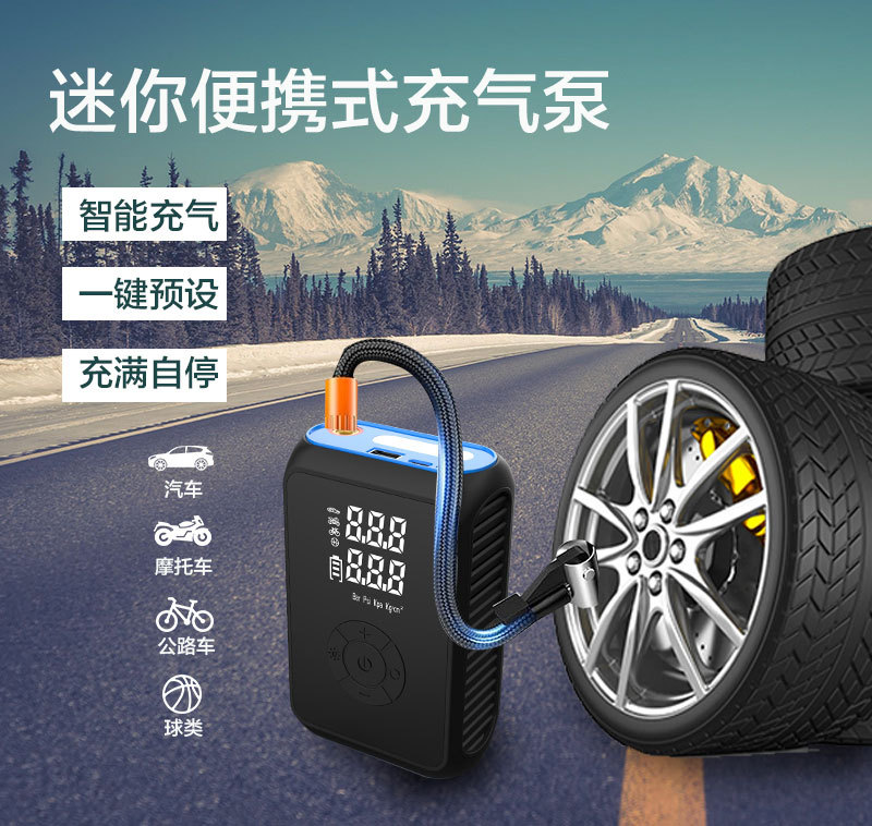 2025 새로운 사용자 정의 OEM 다기능 미니 휴대용 무선 디지털 디스플레이 자동차 공기 펌프 충전 7.4v 자동차