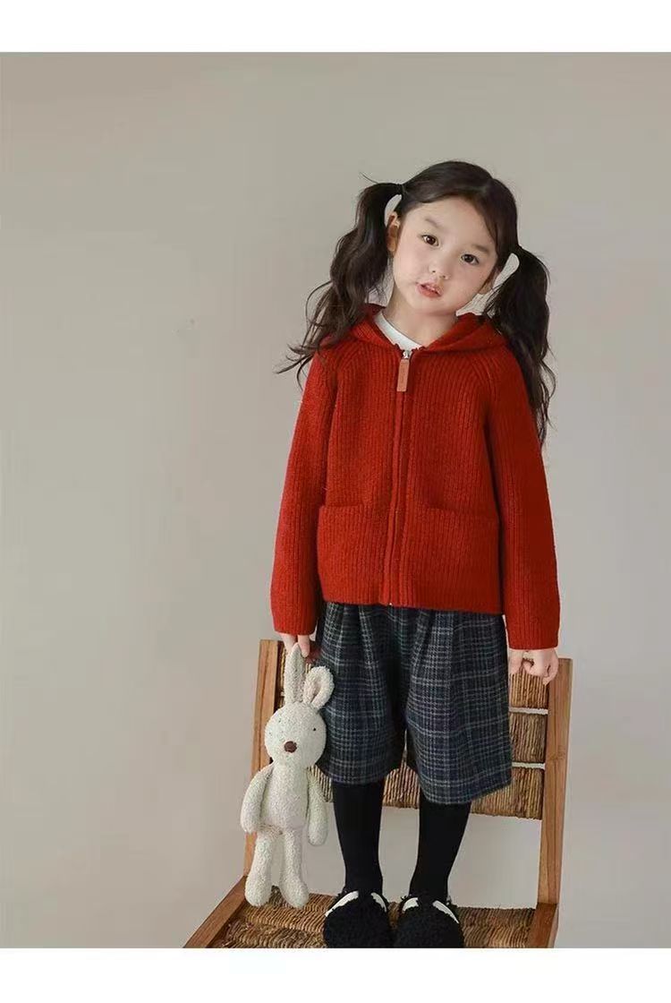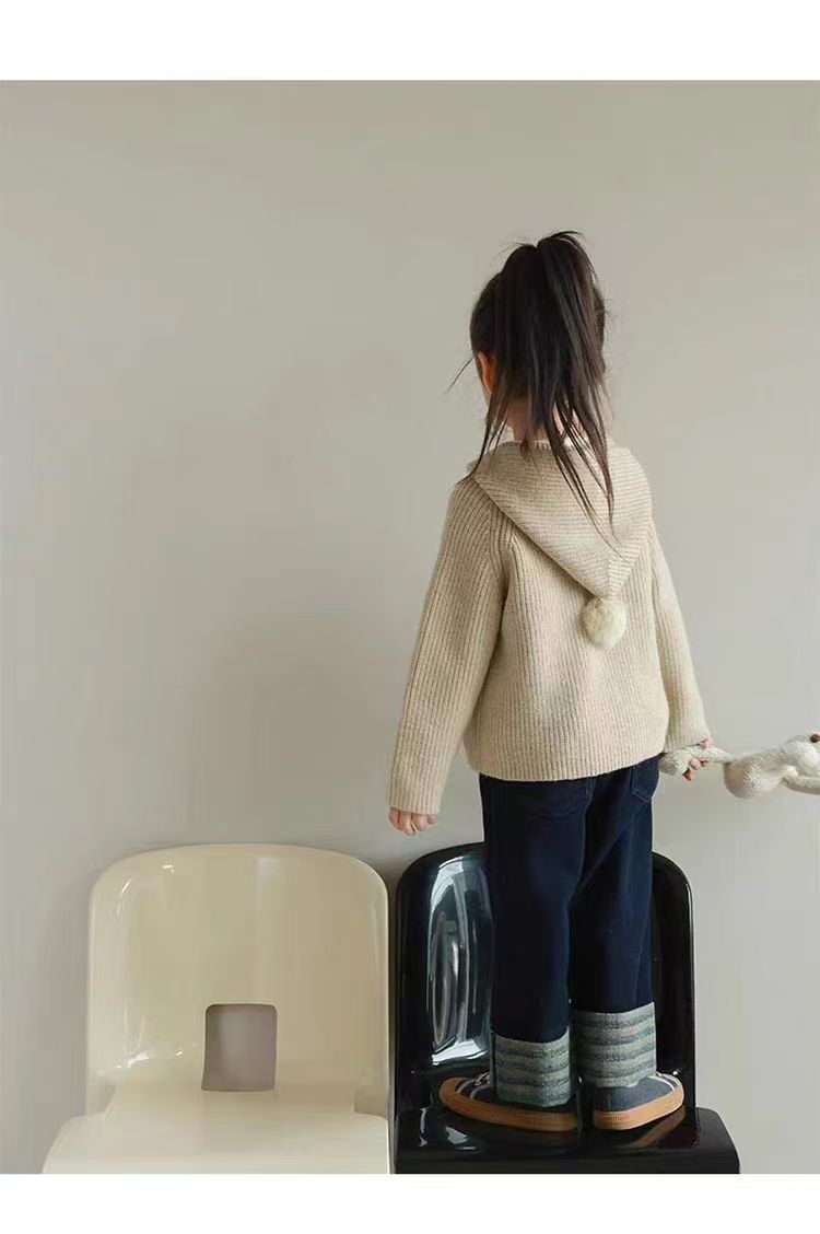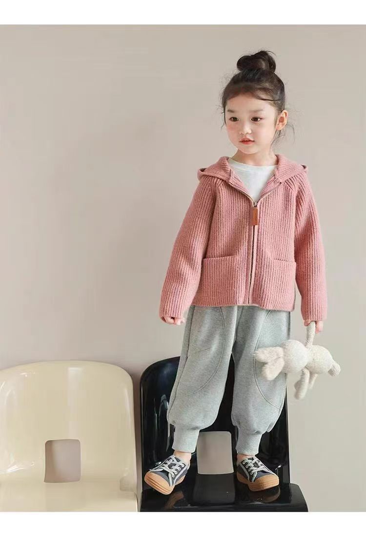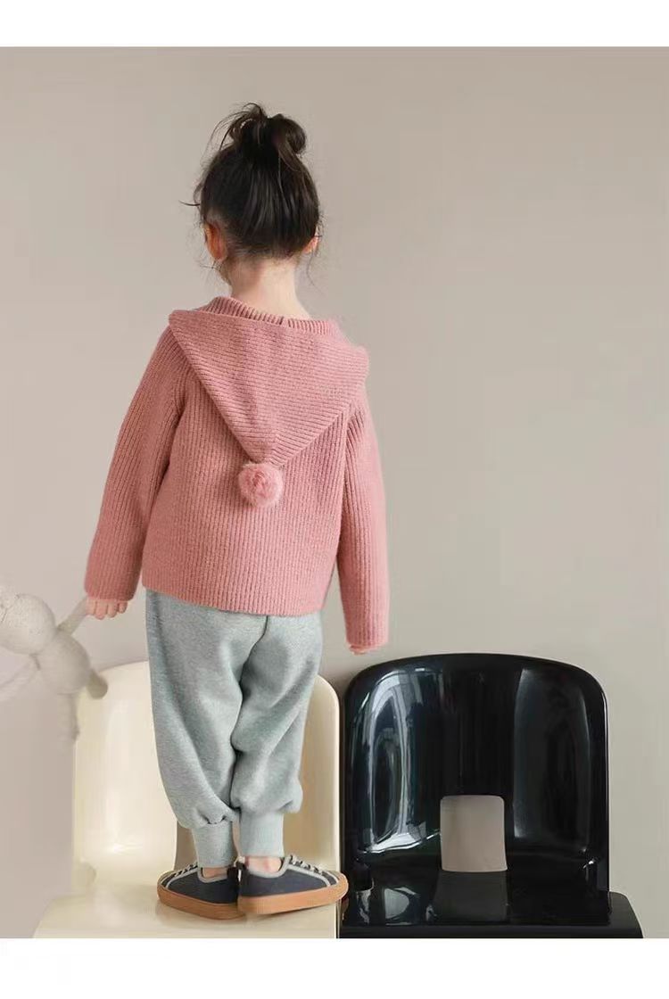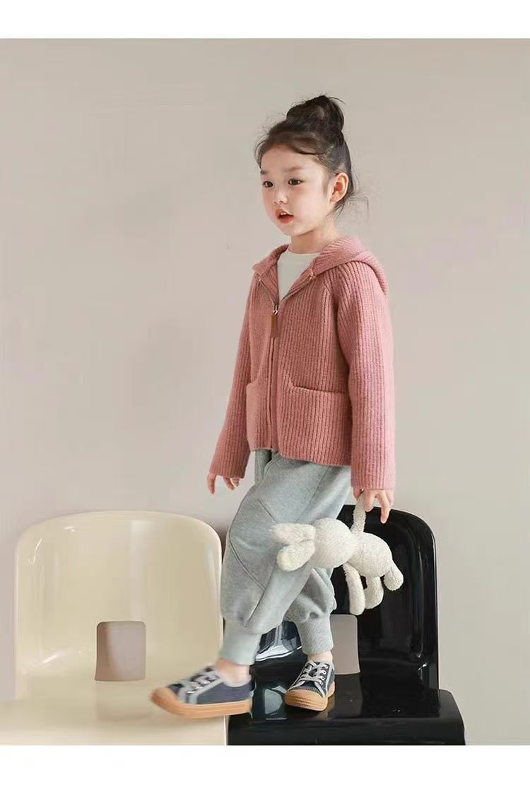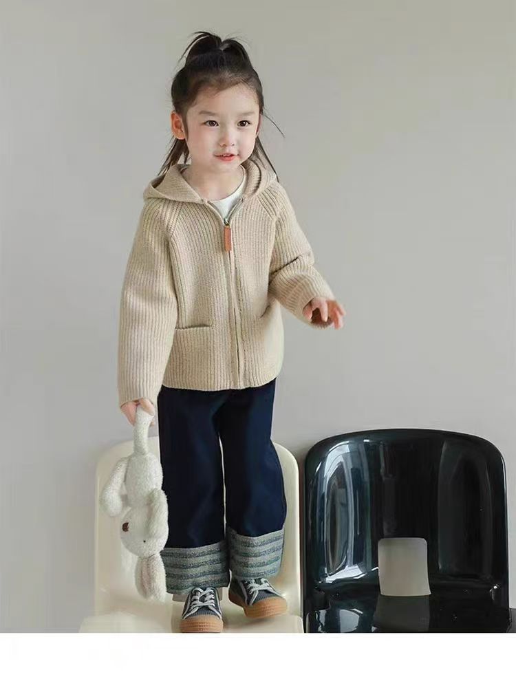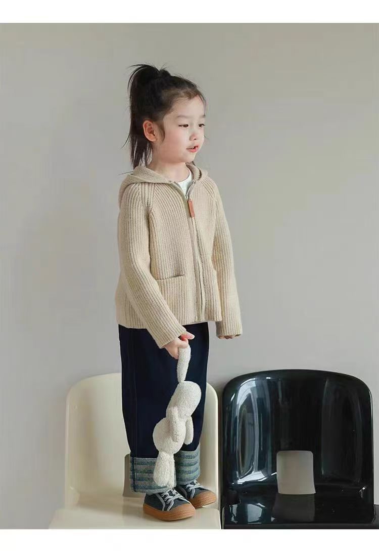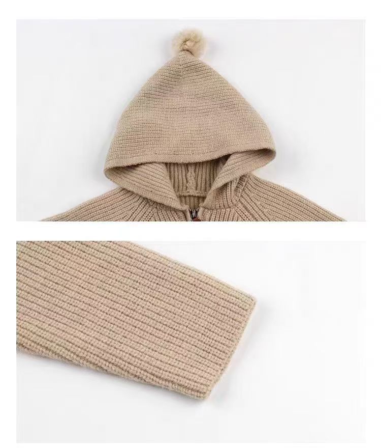 가을 겨울 따뜻한 니트 스웨터 아동용 재킷 귀여운 소녀용 플러시 모자 지퍼형 상의 두꺼운 유아용스토어 가기