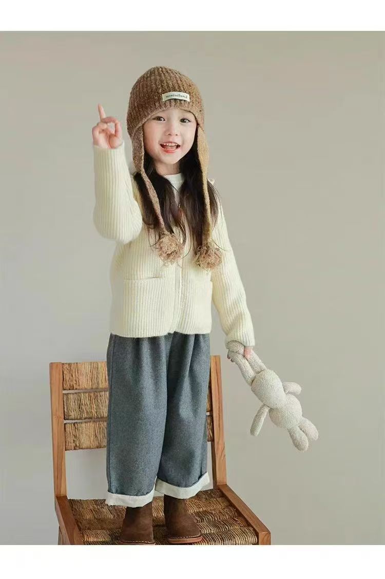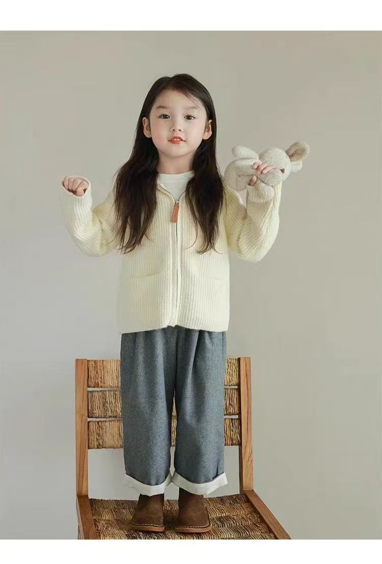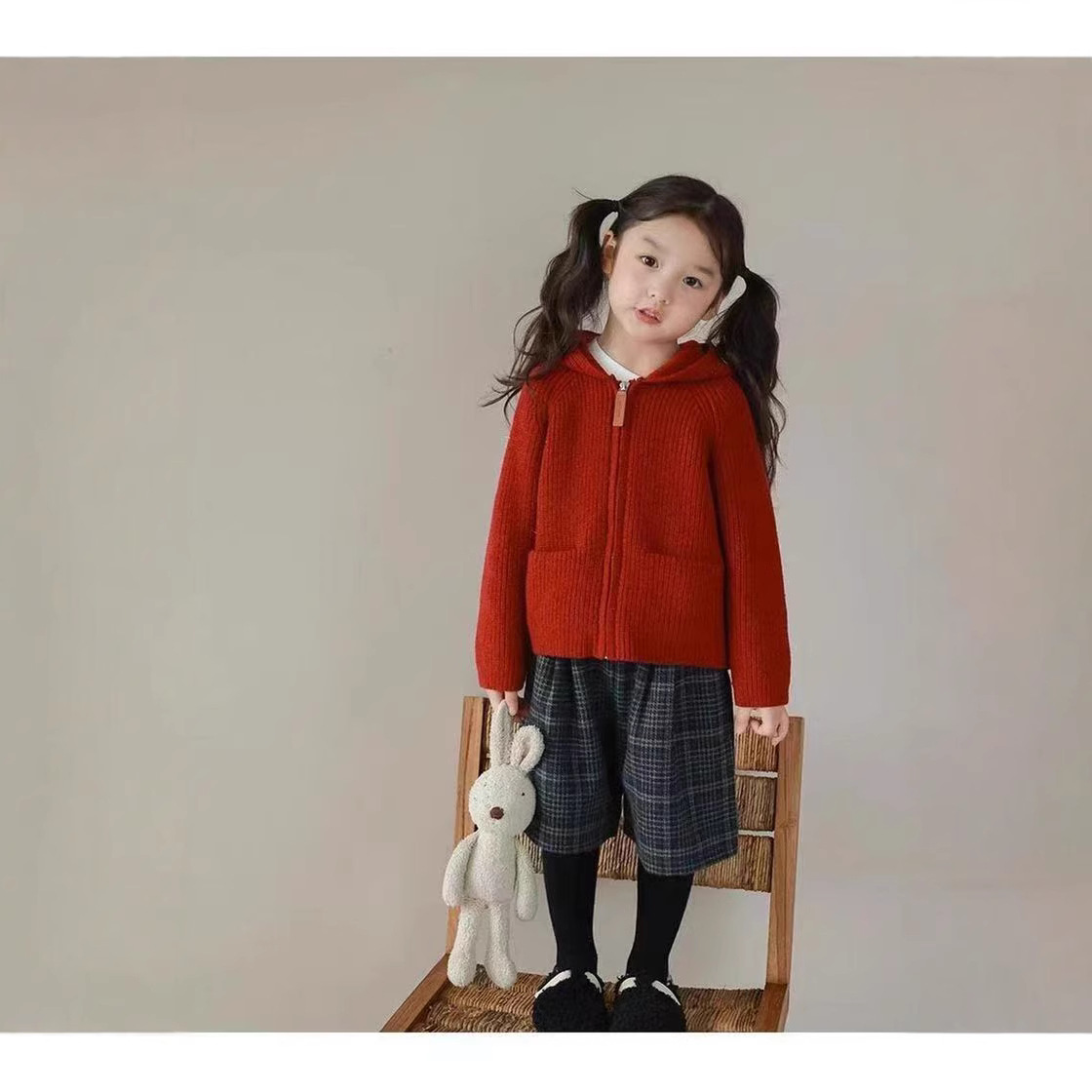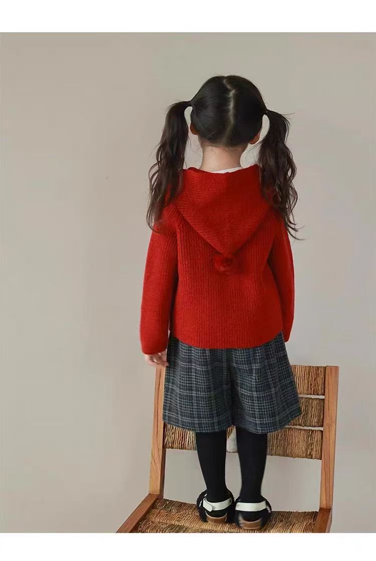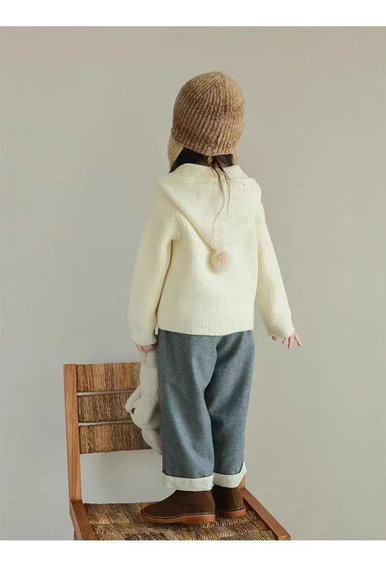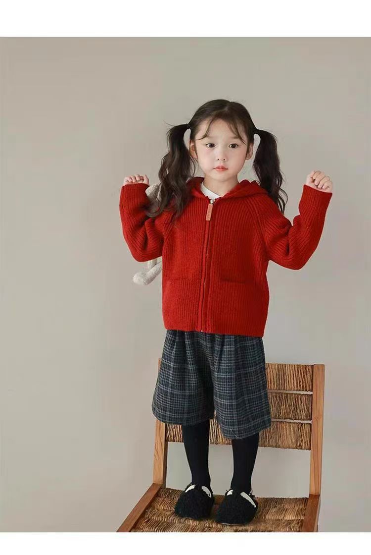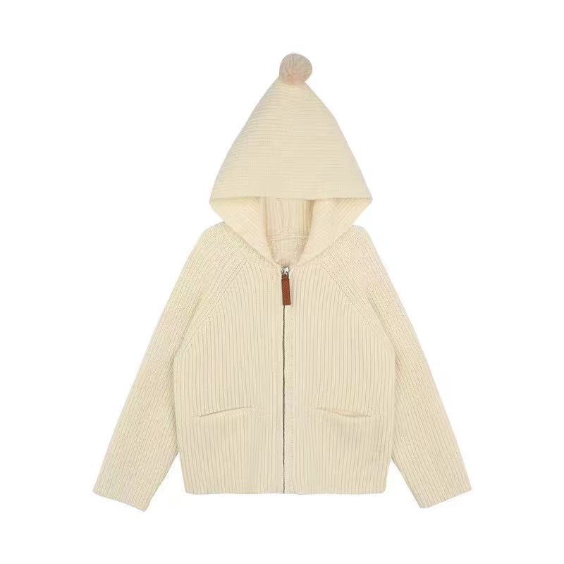 가을 겨울 따뜻한 니트 스웨터 아동용 재킷 귀여운 소녀용 플러시 모자 지퍼형 상의 두꺼운 유아용스토어 가기